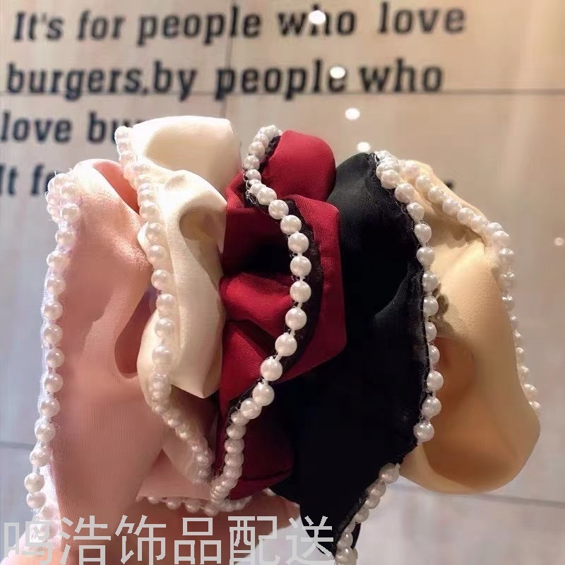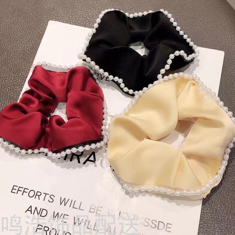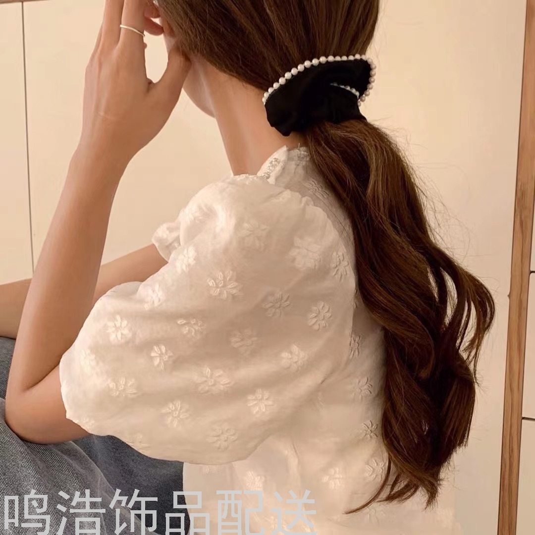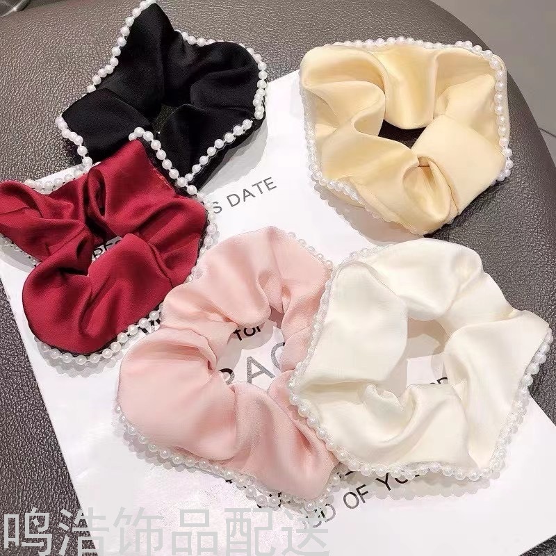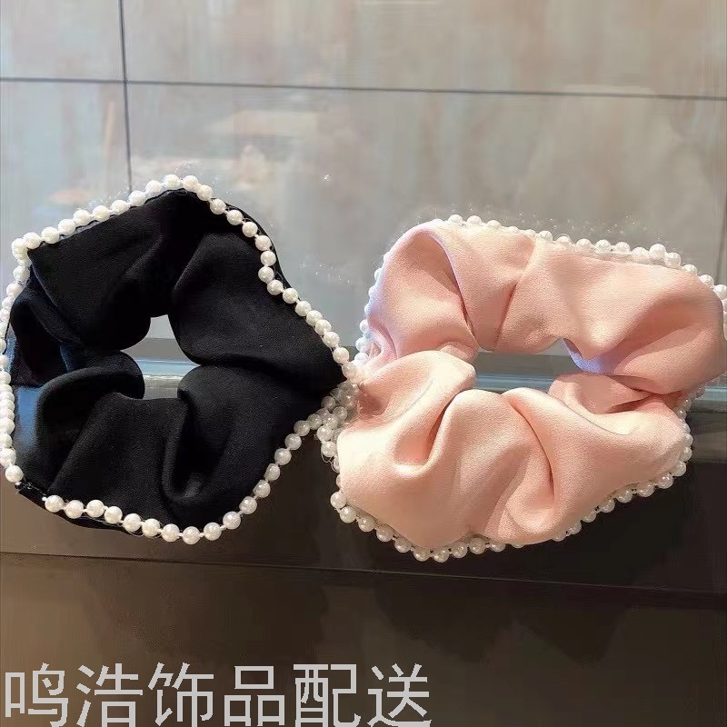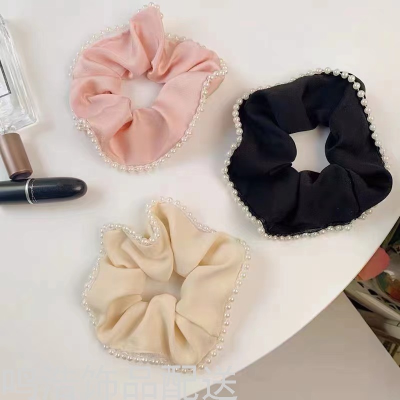 Sweet Pearl Pork Intestine Ring Hair Ring Elegant Graceful Hair Band Satin Silky Intestine Ring Adult Hair Accessories 中文版