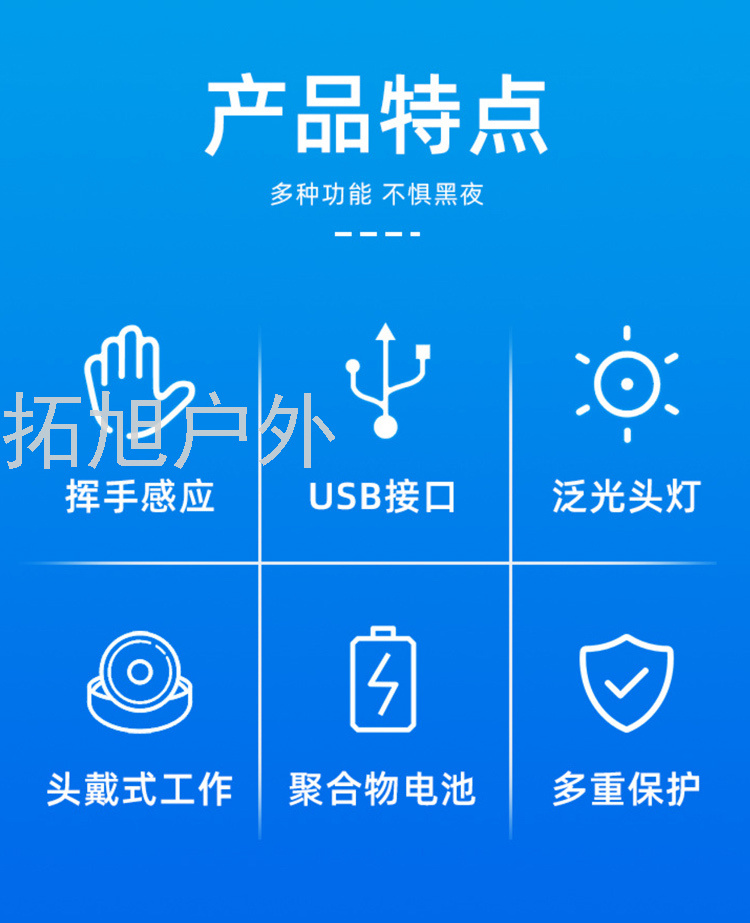 Cob Induction Strong Light USB Headlamp Searchlight 中文版