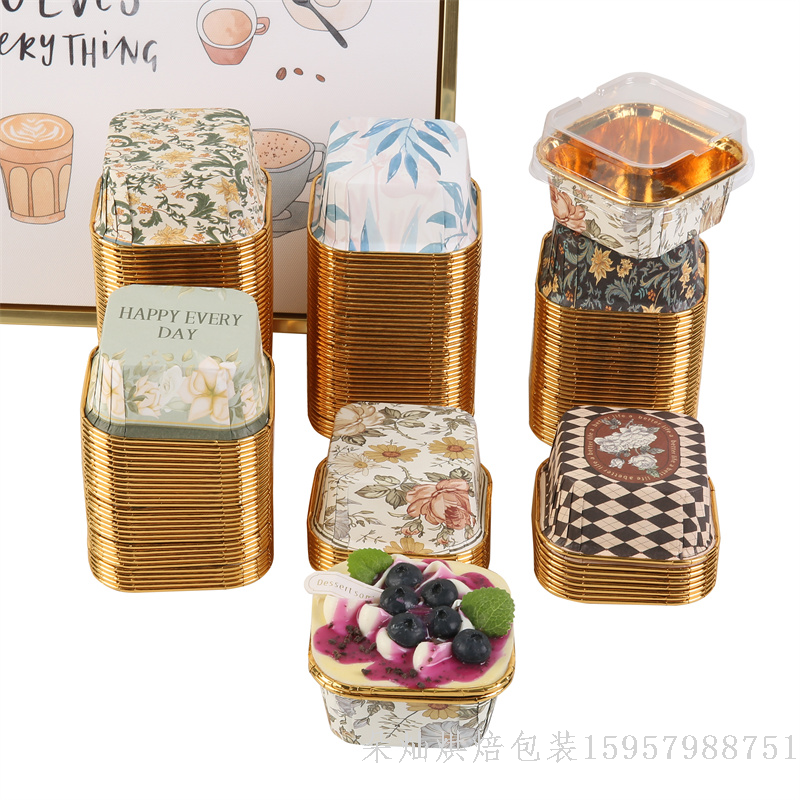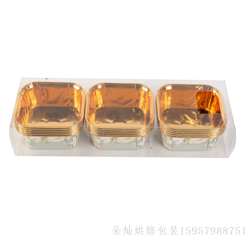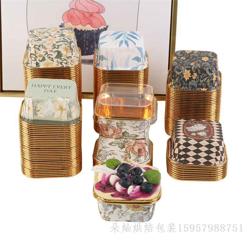 Product Name: French Light Luxury Style Square Single-Sided Gold Cake Cup 6.5*3.5cm, 15pcs/box