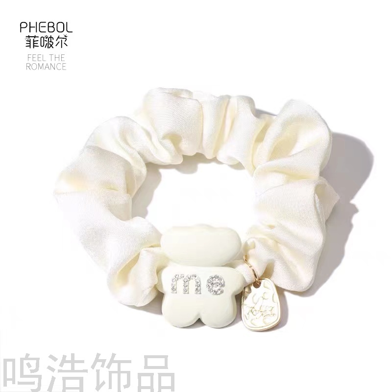 korean medium bear metal rhinestone satin large intestine hair ring hair rope hair rope tie hair ponytail rubber band female 中文版