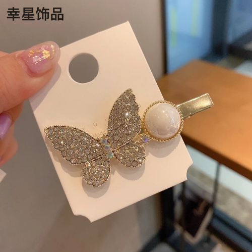Exquisite Hairpin full Diamond Butterfly Pearl Side Clip Girl Simple Hairpin Elegant Temperament Side Hairpin