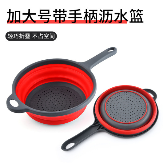 Factory in Stock Retractable Large Capacity Draining Basket with Handle Plastic round Folding Washing Vegetable Basket Kitchen Storage Fruit Tray