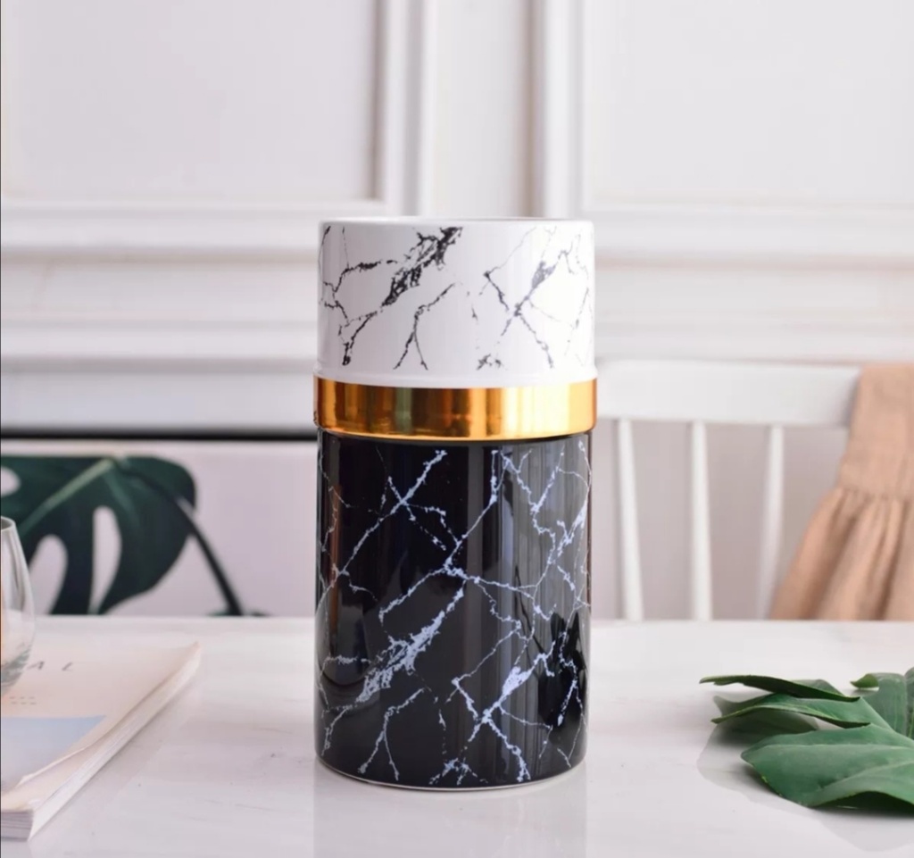 Name: INS Luxury Light Style Simple Modern White and Black Marble Pattern Gold Ceramic Vase Flower Vessel Home Decorative Ornament