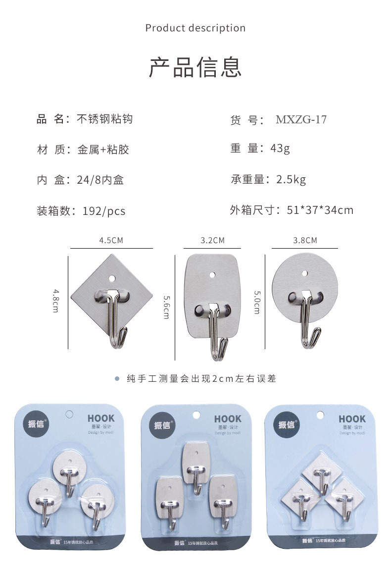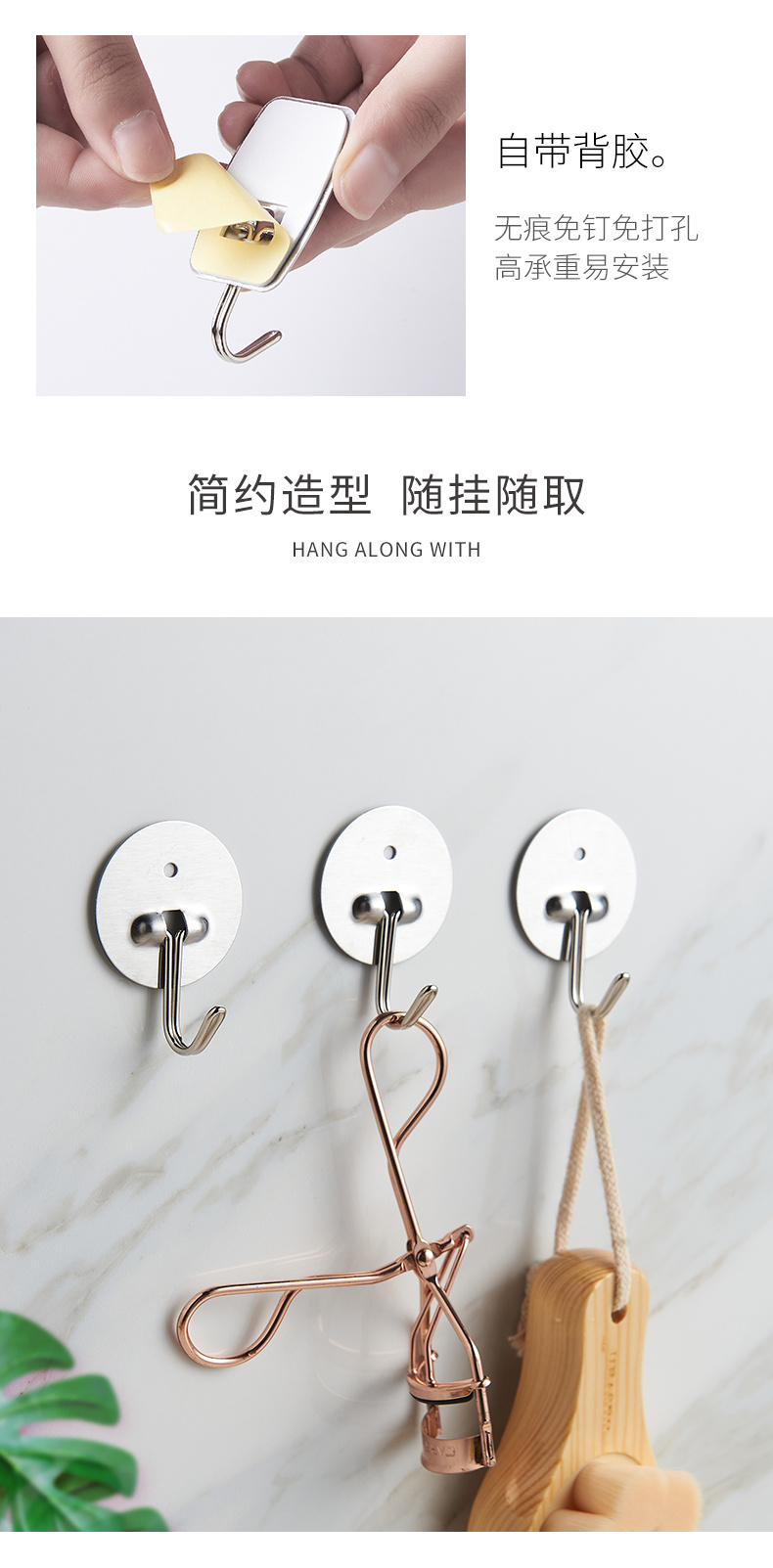 metal sticky hook hook creative door back hook strong simple sticky hook stainless steel hook viscose hook 中文版
