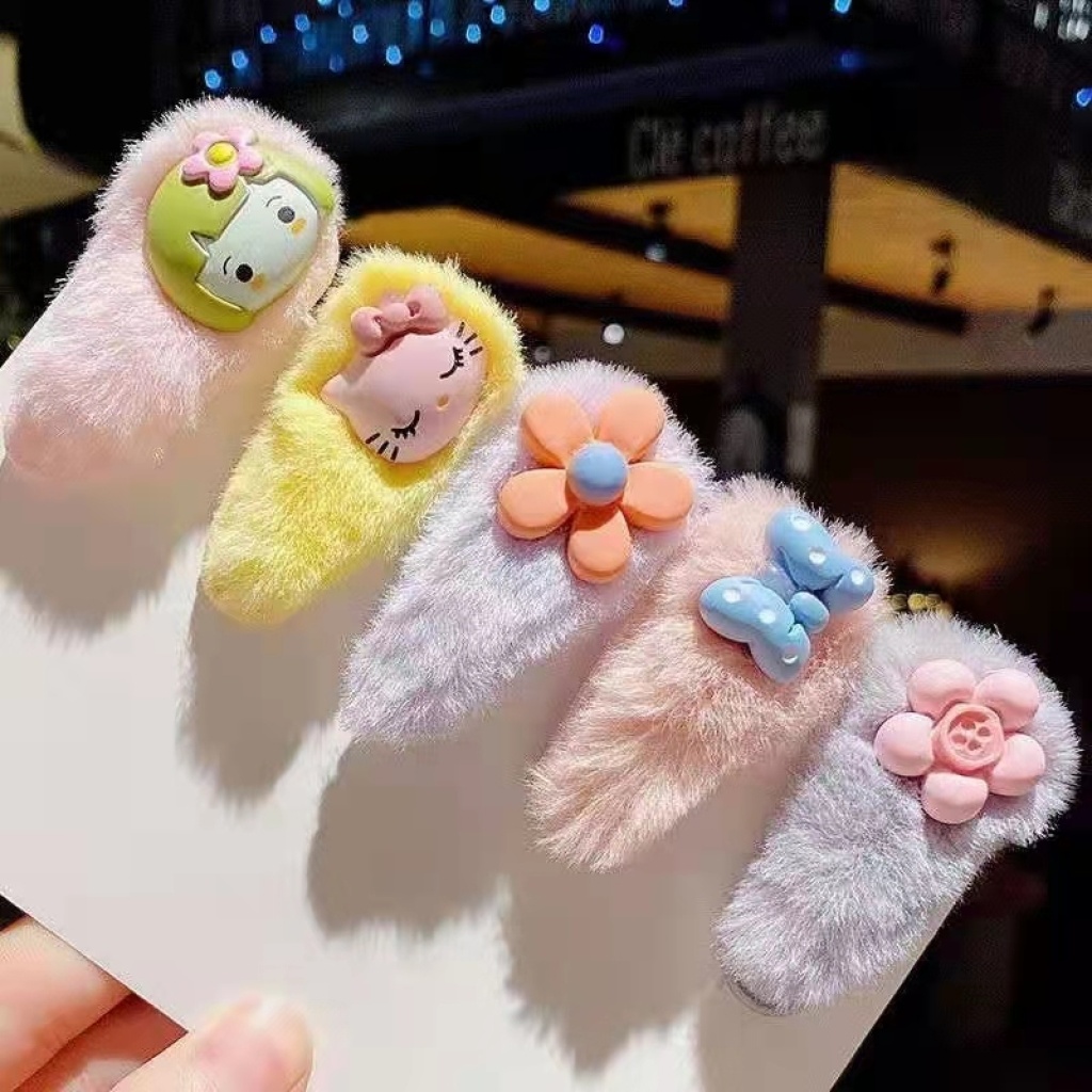 Korean children's hair clips, colorful cartoon fluffy hair accessories, cute baby BB clips, princess side bangs, hair accessories, autumn fluffy hair clips, side clips for children, flower side bangs, side clips for children, cute and super cute small hair clips