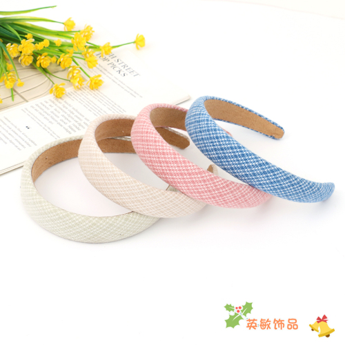 korean style new preppy style plaid pattern fabric headband girl's fashionable personalized headband headdress cross-border supply