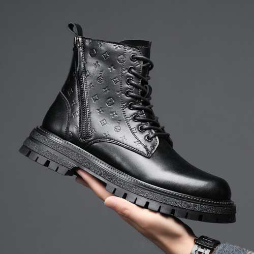 Men's Trendy Printed Dr. Martens Boots British Style High Top Working Wear Autumn and Winter Side Zip Platform Leather Boots 中文版