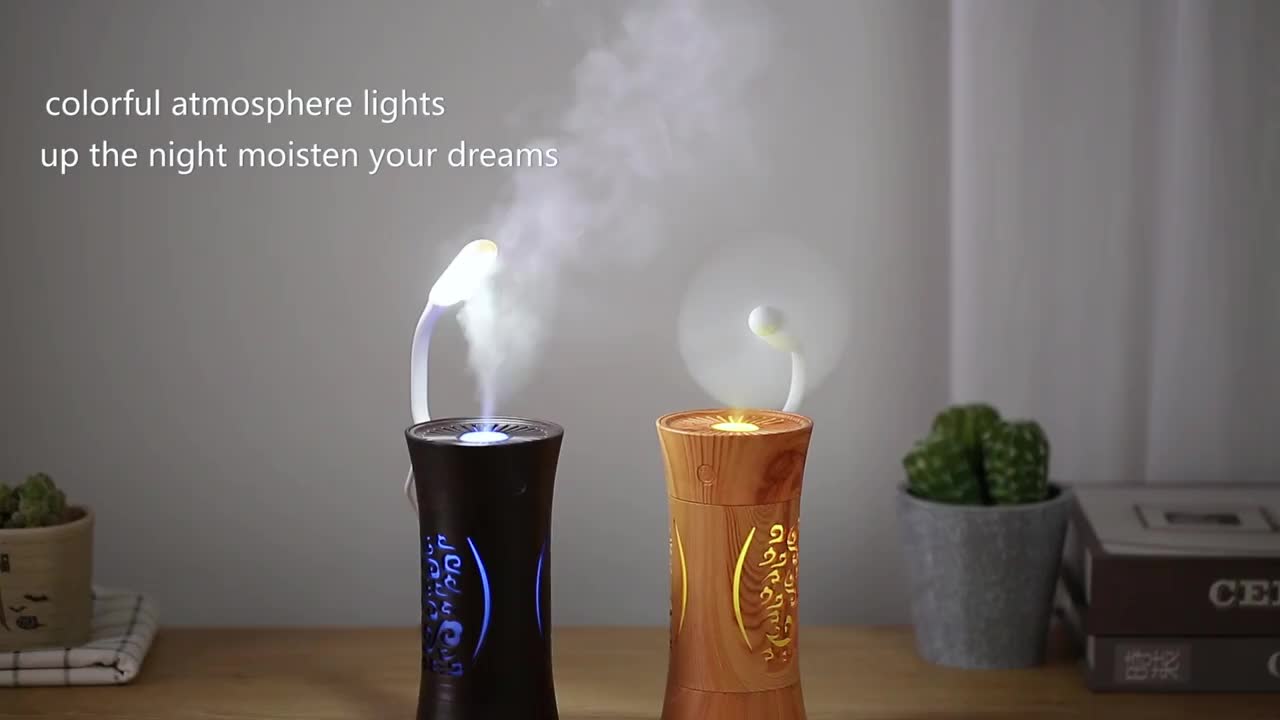 New Creative Wood Grain Hollow Humidifier Home Car Mini USB Aromatherapy Air Desktop Atomization Humidifier 中文版