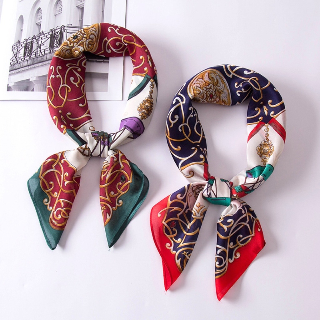New Silk Scarf Wholesale 70*70 Printed Small Square Scarf Women's Artificial Silk Long Silk Scarf Scarf Hair Band Decoration