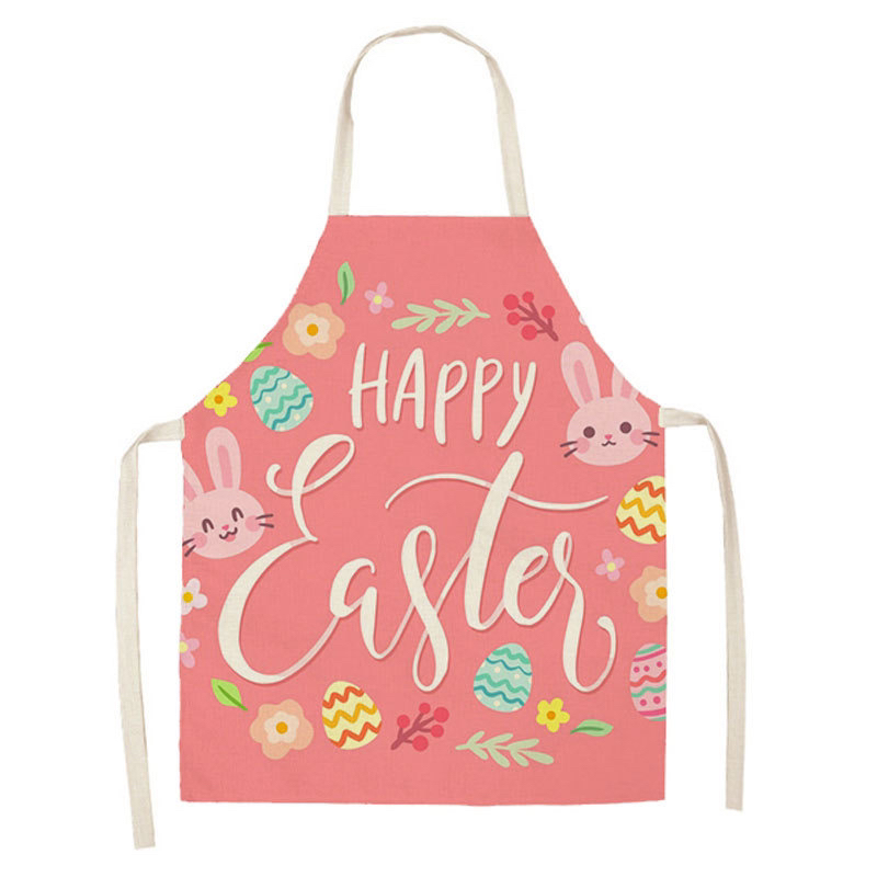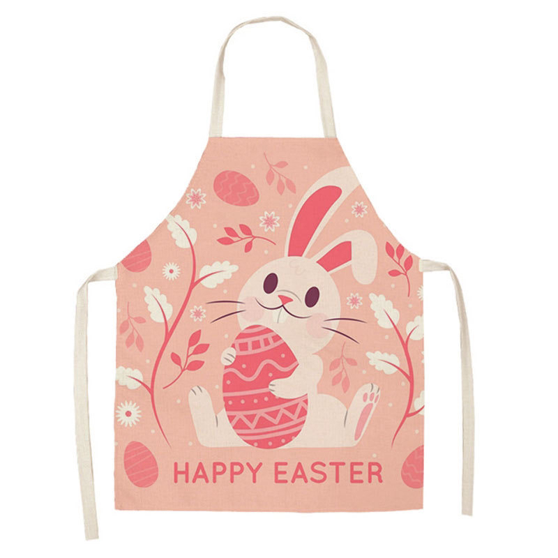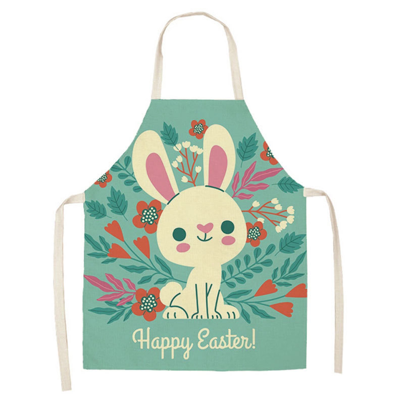 New Linen Printed Kitchen Waterproof Easter Rabbit Apron 中文版