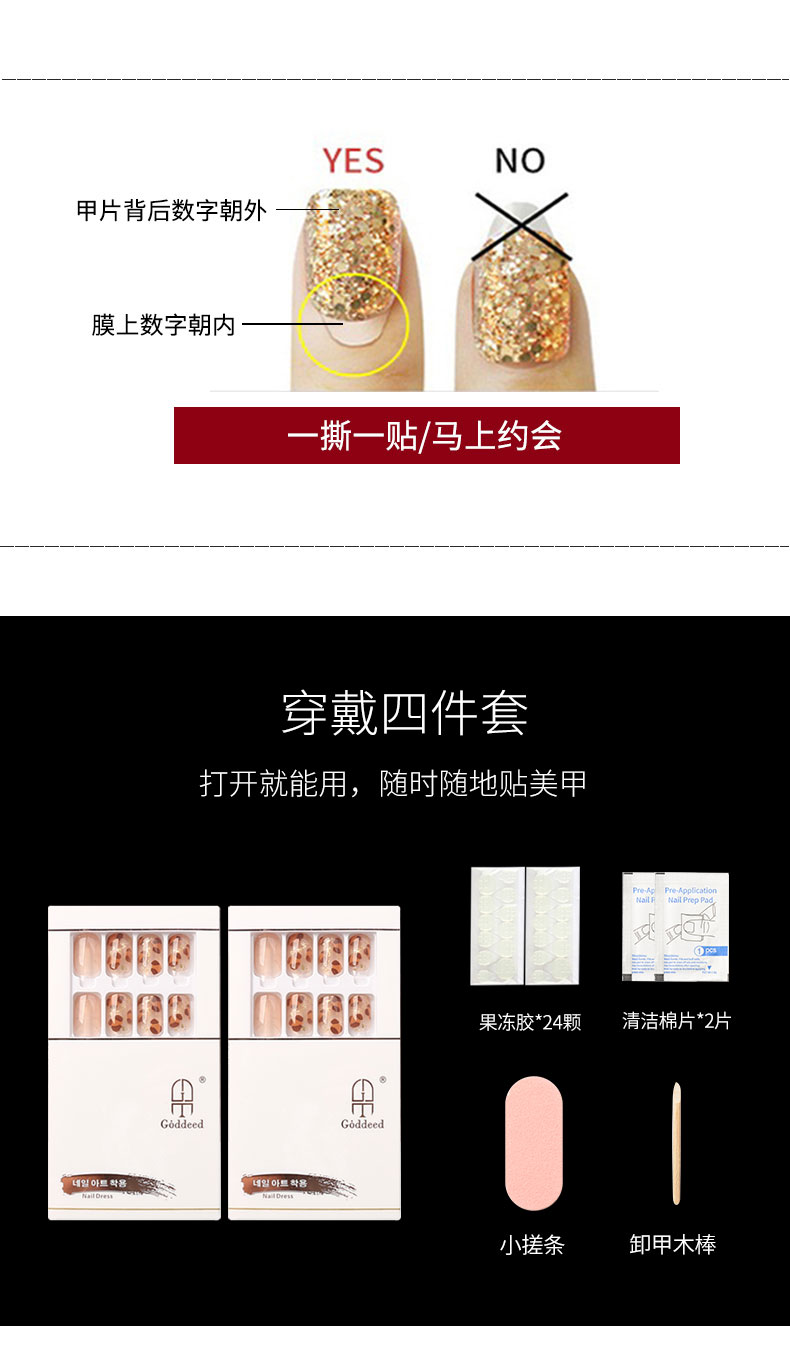 Jiadi 2021 New Wearable Nail Beauty Nail Nail Sticker Pieces Women's Finished Product Internet Celebrity Removable Waterproof Nail Sticker Summer 中文版