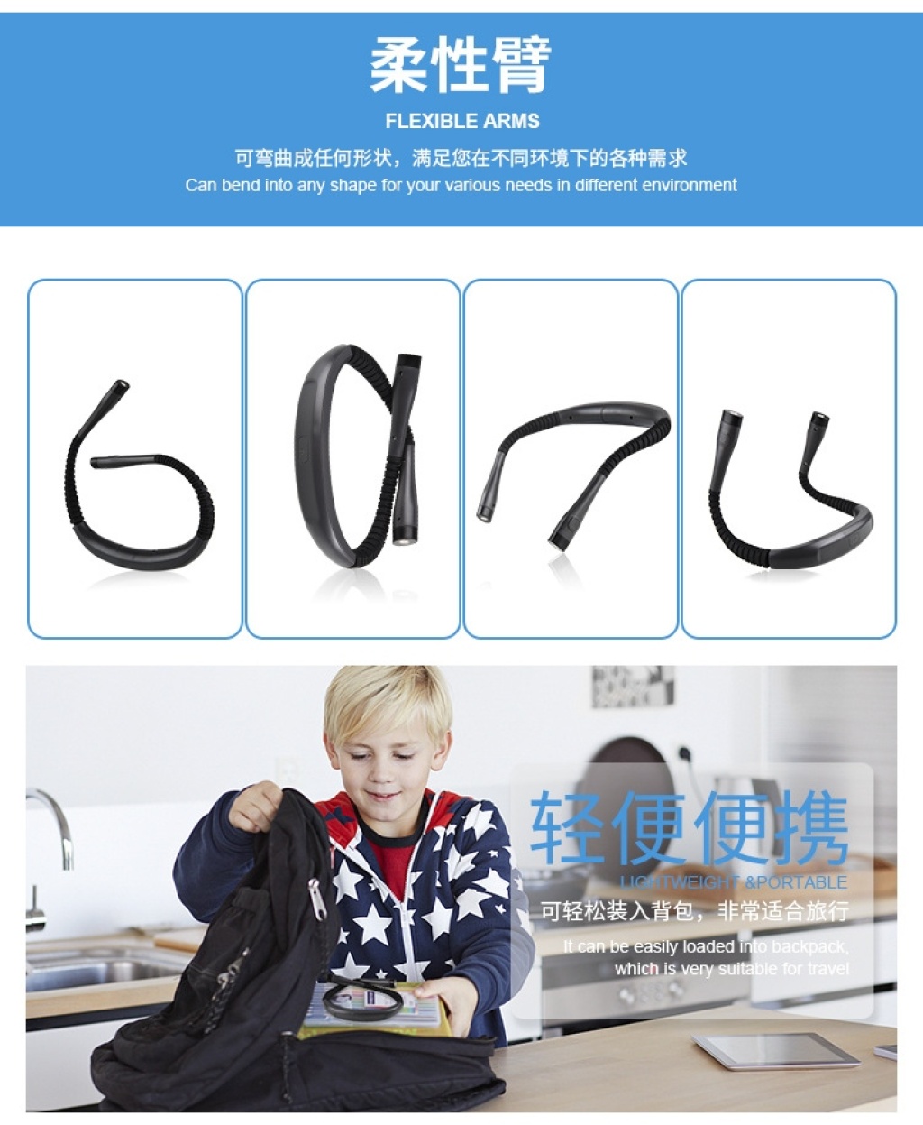 bedroom usb reading lamp neck light led universal hose adjustable eye protection neck light outdoor night run lighting 中文版