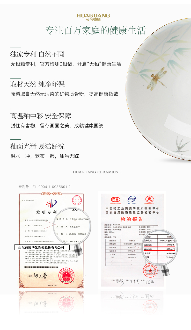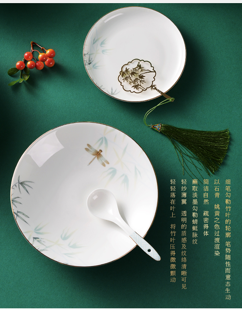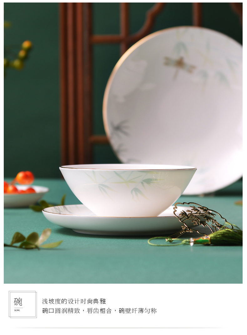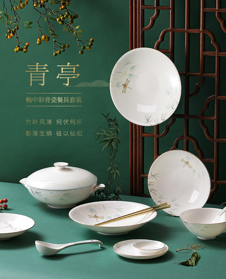 Huaguang National Porcelain Bone China Tableware Suit Bowl and Dish Set Household Bowl Plate Chinese Tableware Set Qingting