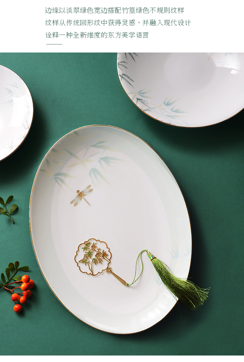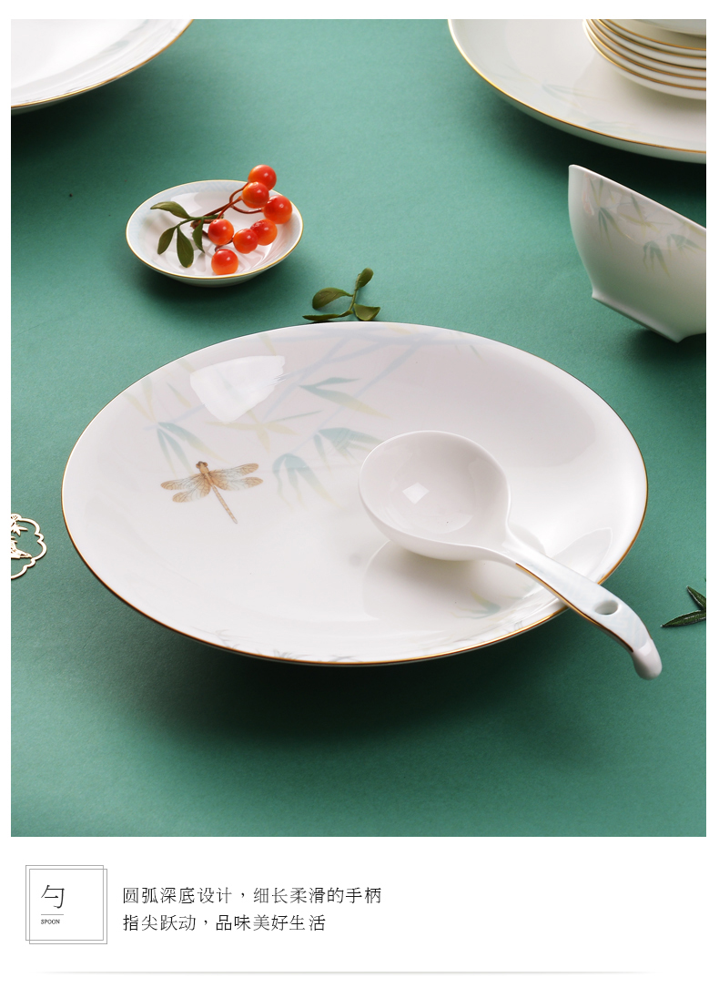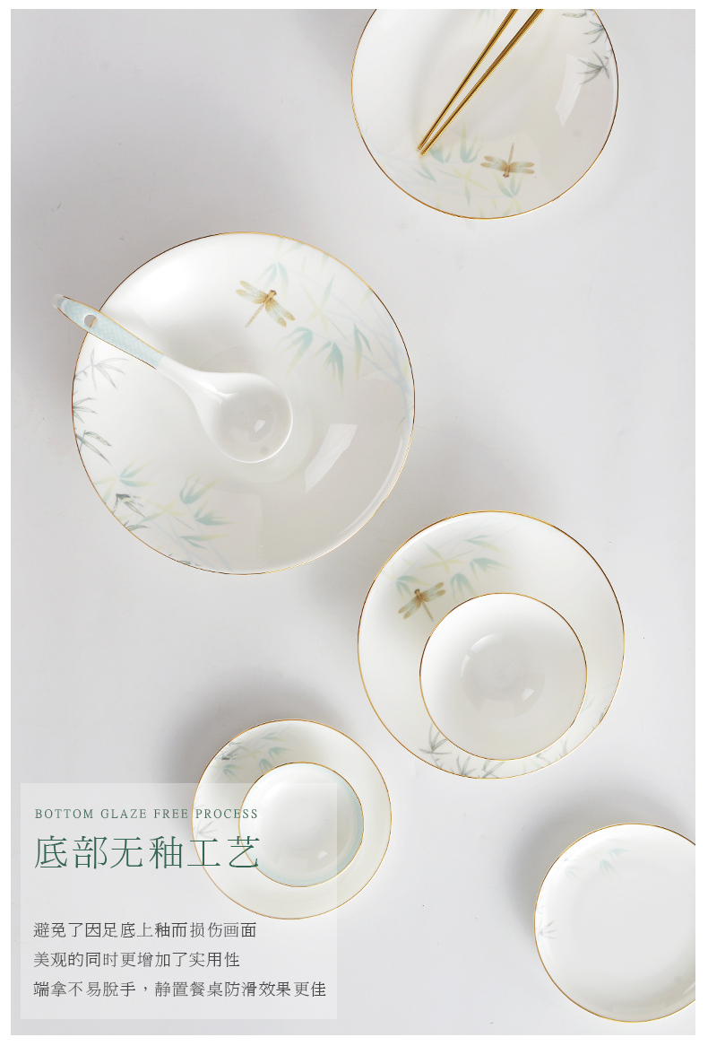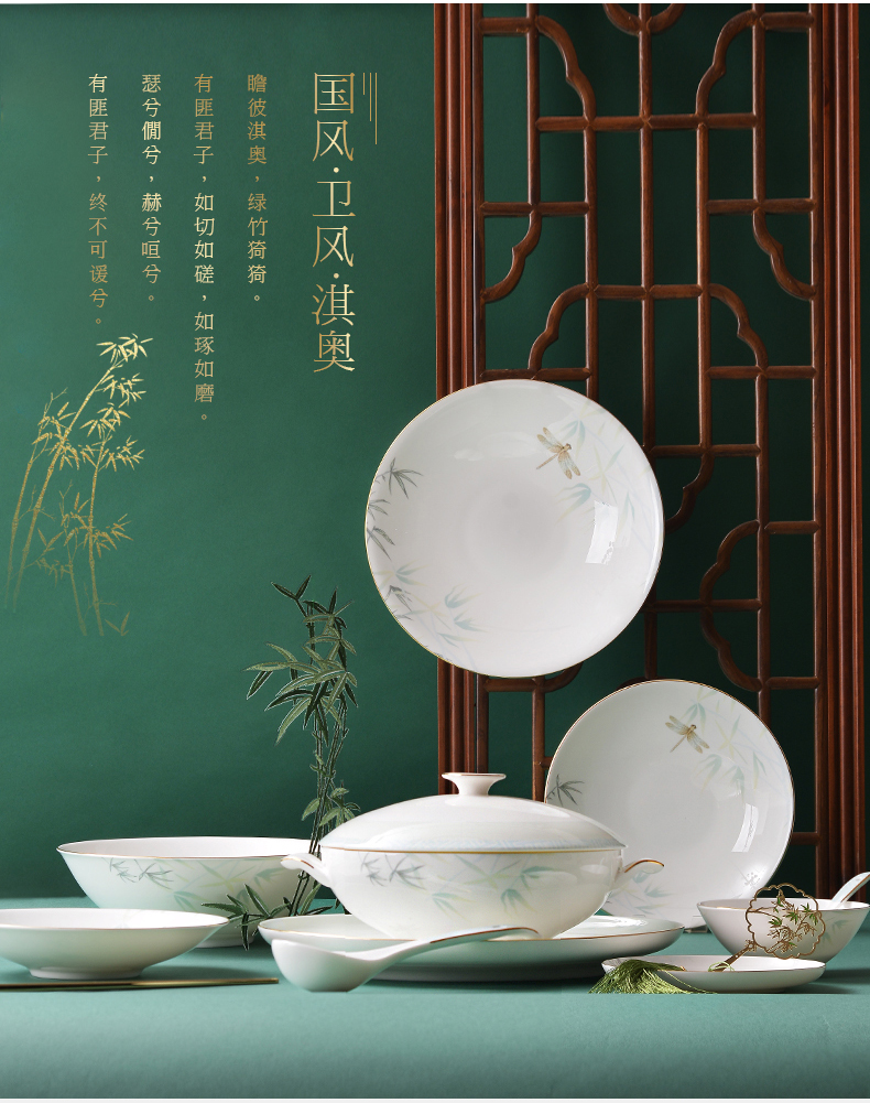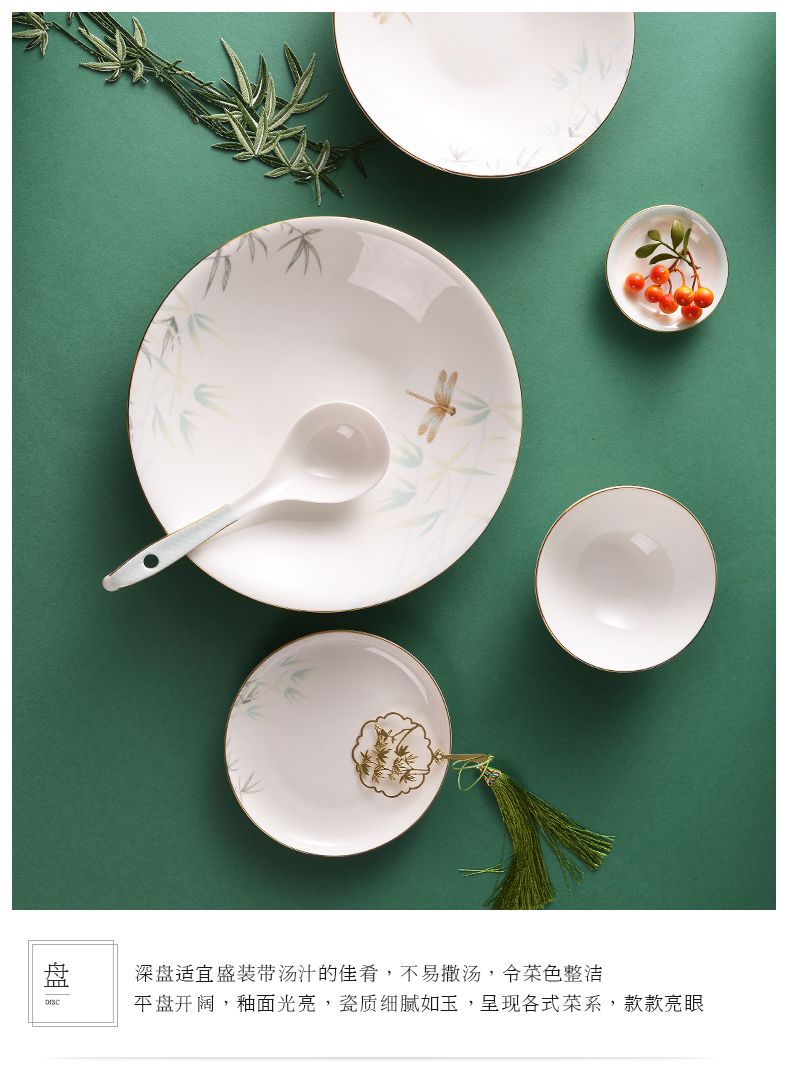 Huaguang National Porcelain Bone China Tableware Suit Bowl and Dish Set Household Bowl Plate Chinese Tableware Set Qingting
