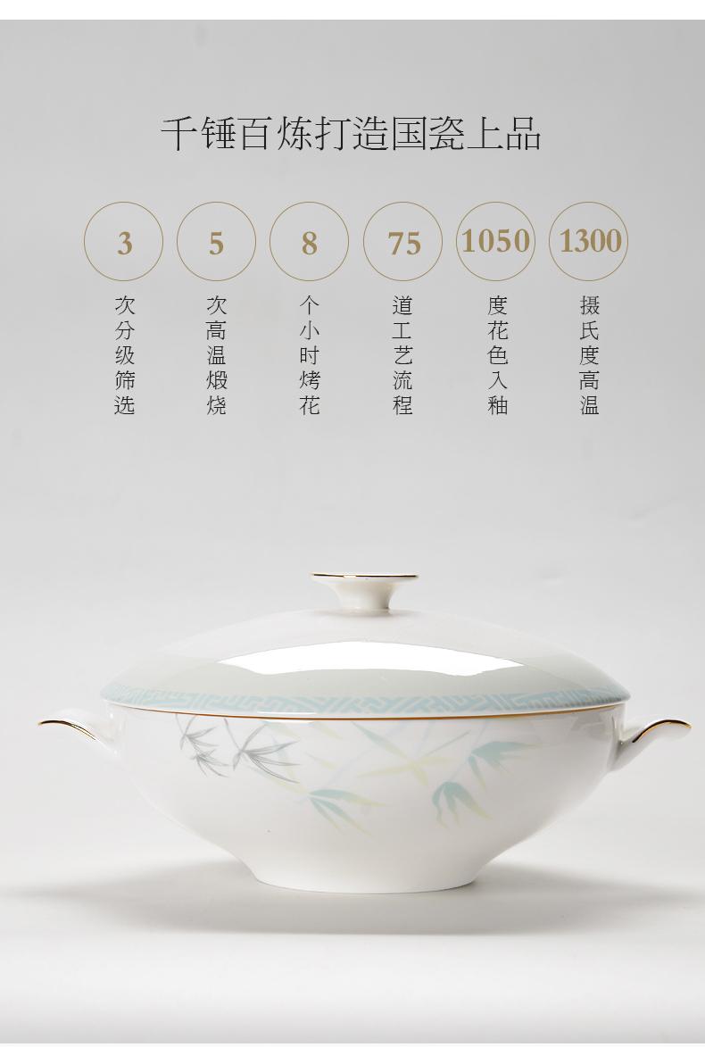About Product:5 times of high temperature calcination, in-glaze decoration process, drawing paper completely dissolved in transparent lead-free glaze to seal harmful substances, give you a healthy meal, smooth glaze, worry-free washing dishes, transparent lead-free glaze, not easy to hide dirt, warm water, no trace of oil pollution! Under the light, it is like a rare treasure. The white wall is bright and clear, the sound is like a rock, the warmth is like jade, delicate and transparent!
