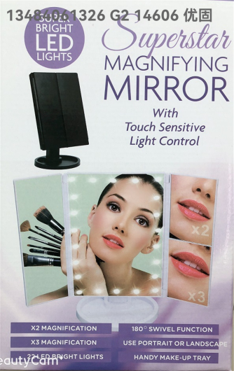 22 Light Three-Fold Led Make-up Mirror 2 X3x Magnifying Makeup Mirror Comb Makeup Table Mirror Desktop Three-Side Folding Mirror with Light