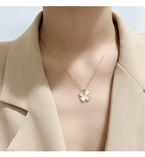 ins korean style fashion opal necklace female peach heart clover clavicle chain titanium steel jewelry ornament non-fading