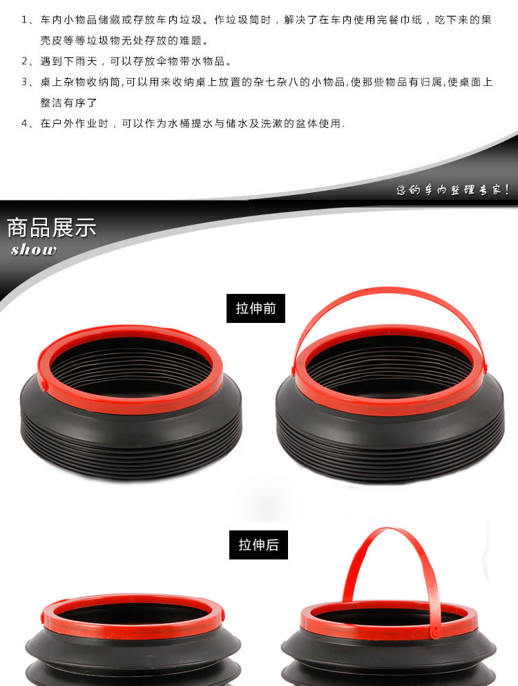 4. When using, the barrel can be pulled up according to the actual volume required; The height reaches 22CM (CM) and the volume is 4 liters (L).
