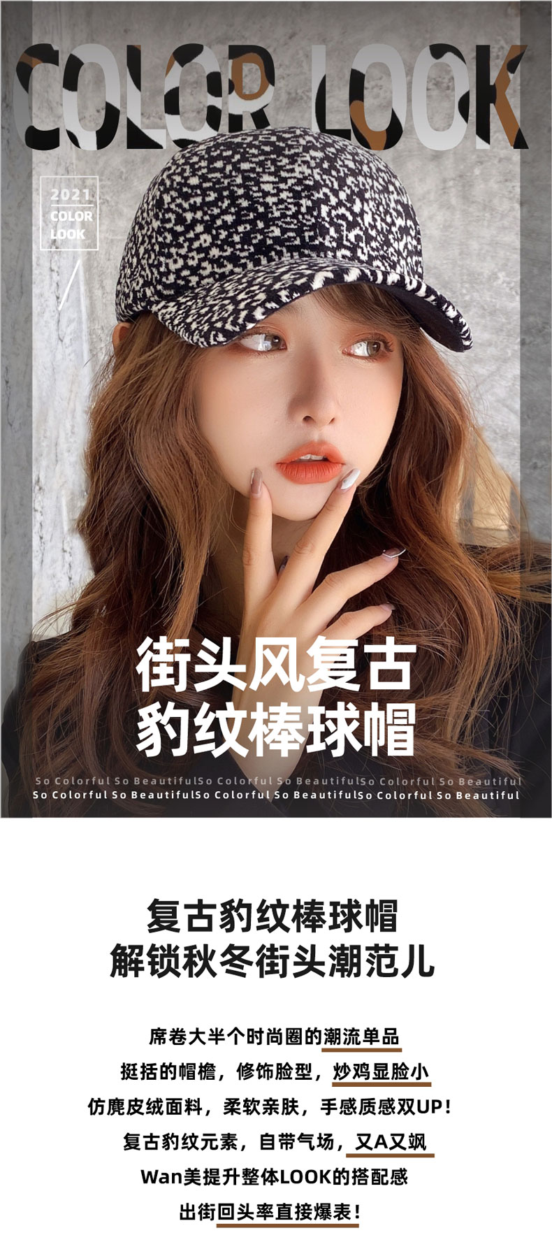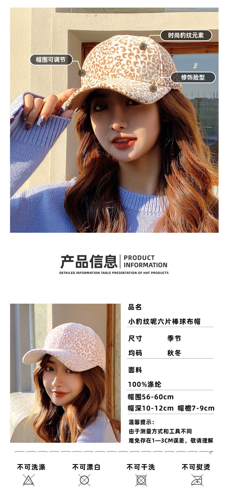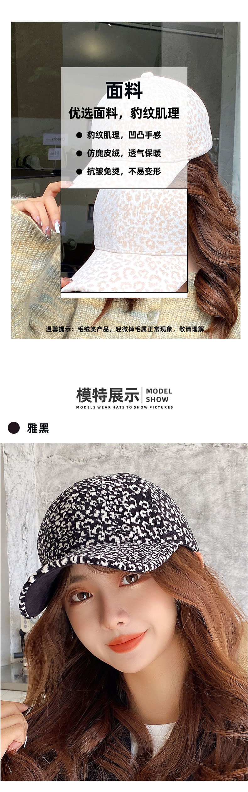 fashion all-match leopard print woolen peaked cap sun hat outdoor sun protection baseball cap korean style