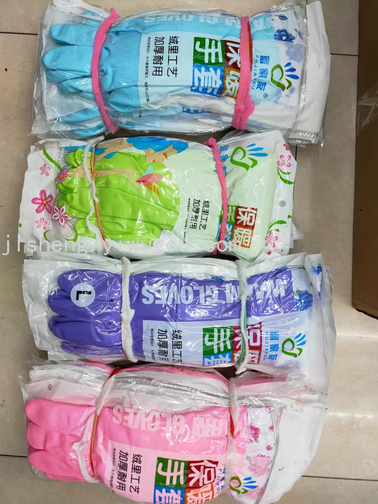 Rich family friends' washing gloves with wool, elastic and colorful leather gloves, length is 50CM, each pair is individually packaged, 10 pairs per box, one piece is 200 pairs