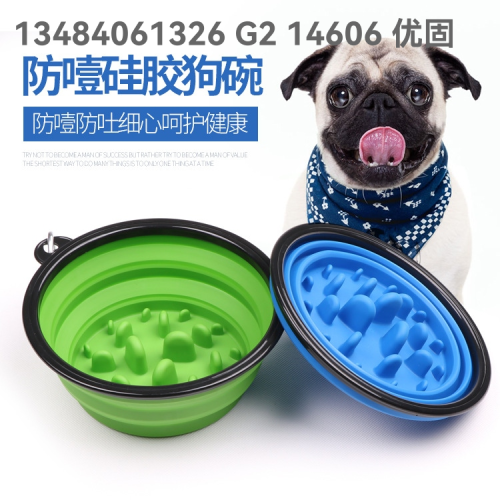 Pet Bowl Pet Slow Feeding Bowl Anti-Choke Dog Bowl Outdoor Portable Folding Bowl Pet Supplies in Stock 中文版