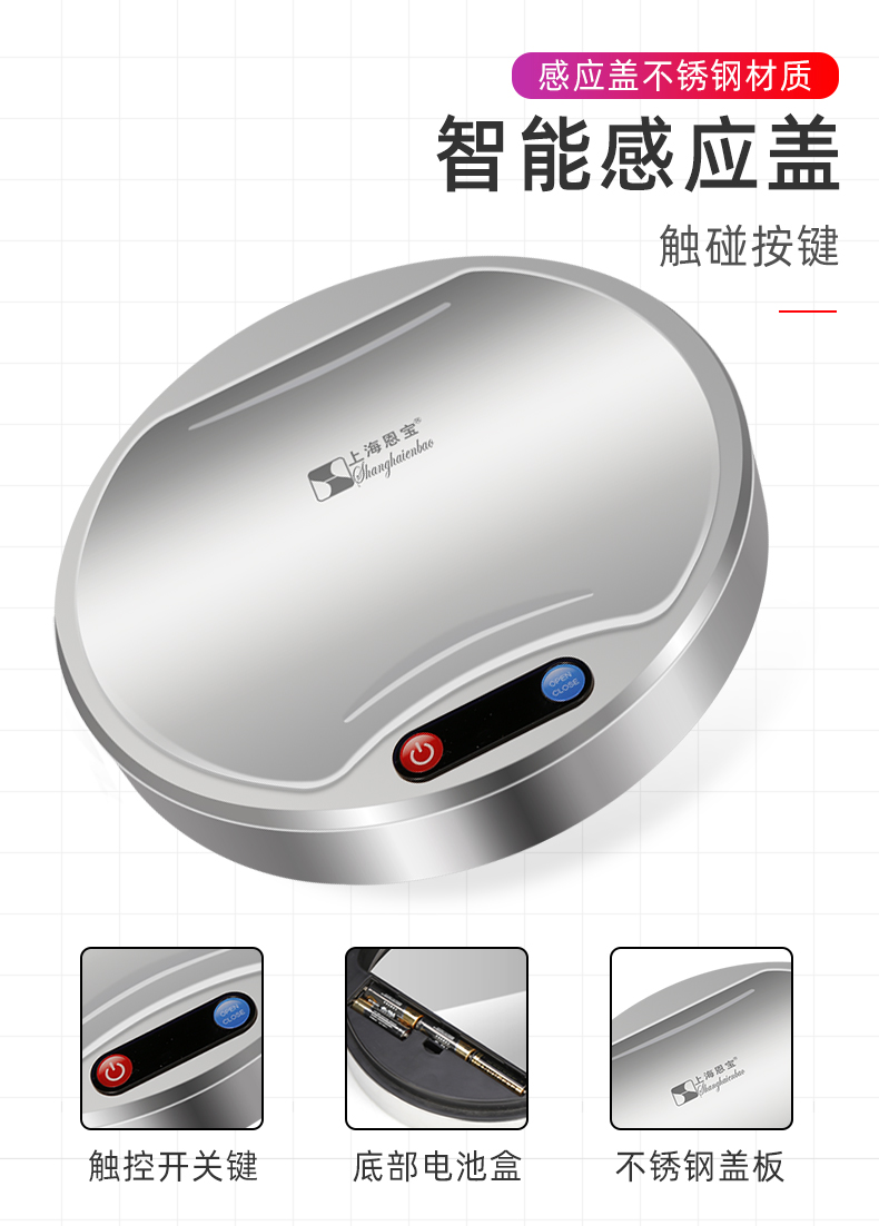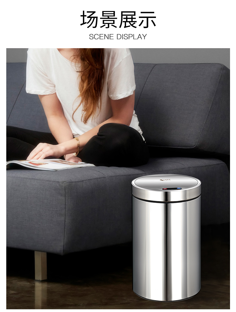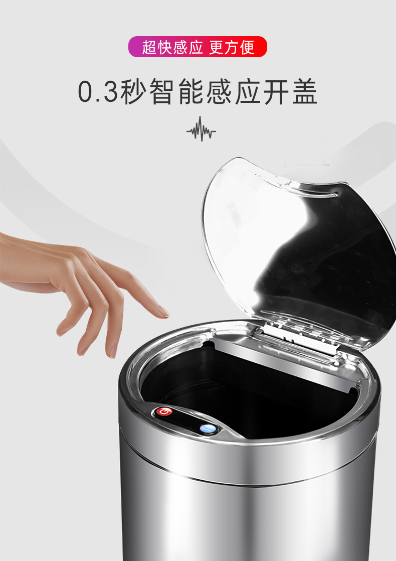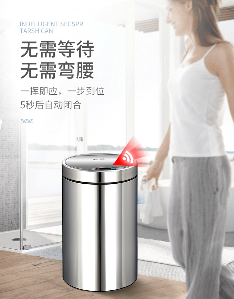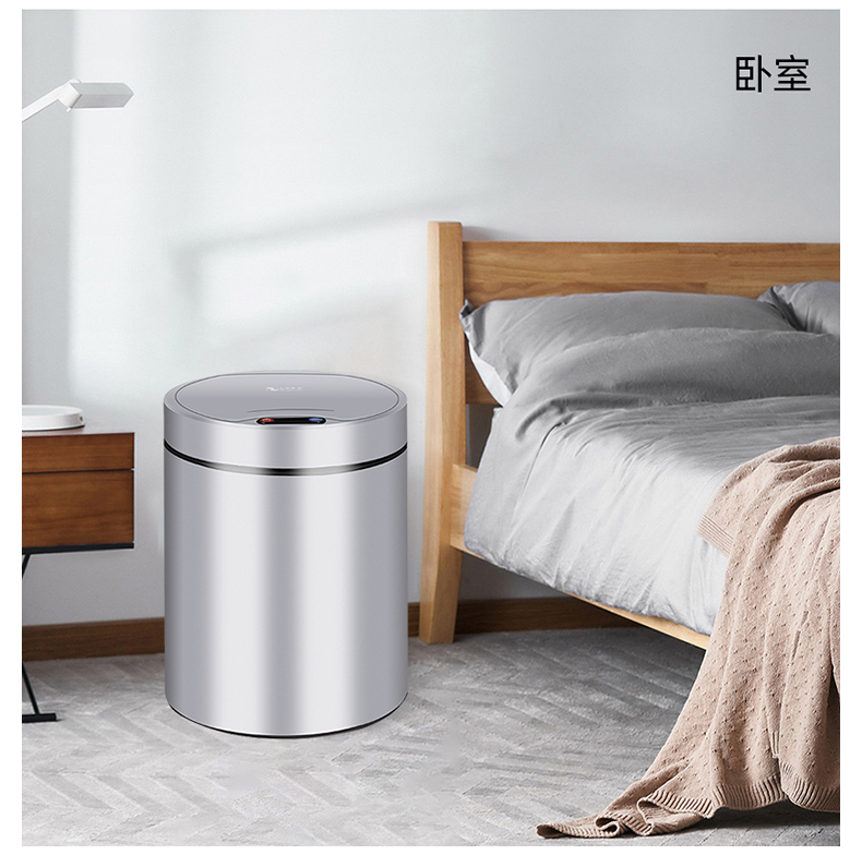 About Product:Stainless steel automatic induction large capacity trash can round with lid domestic toilet kitchen living room open cover