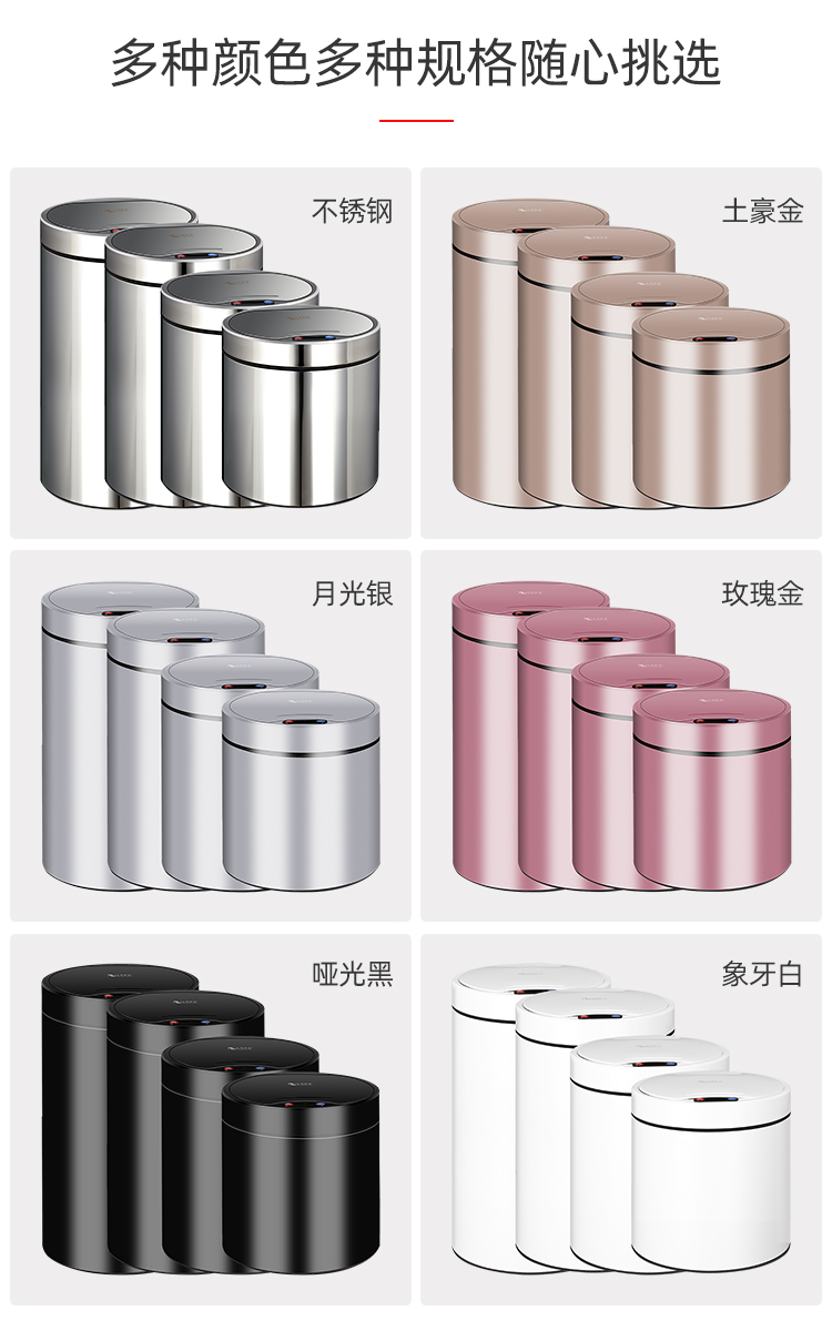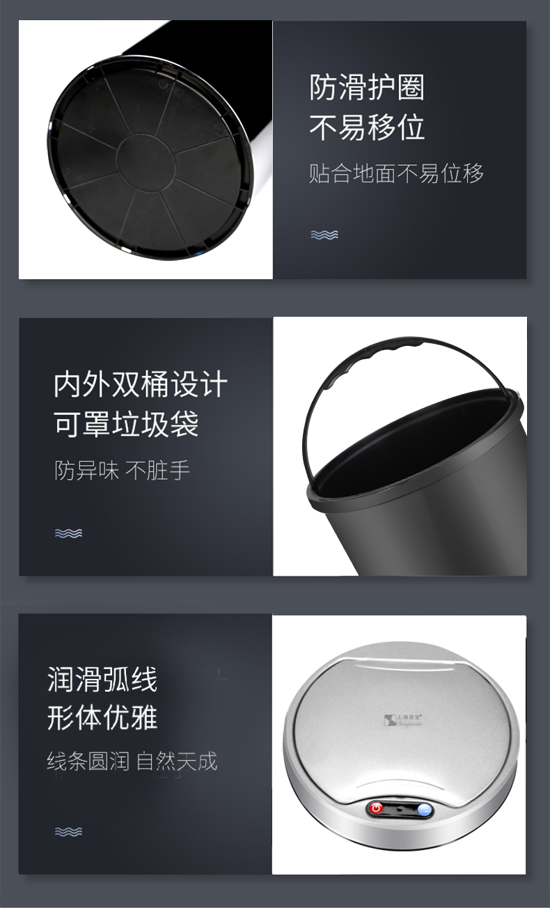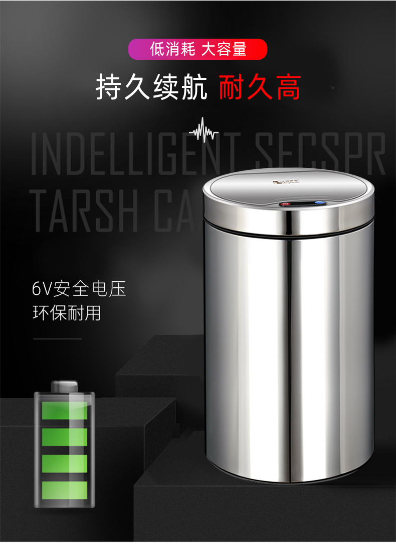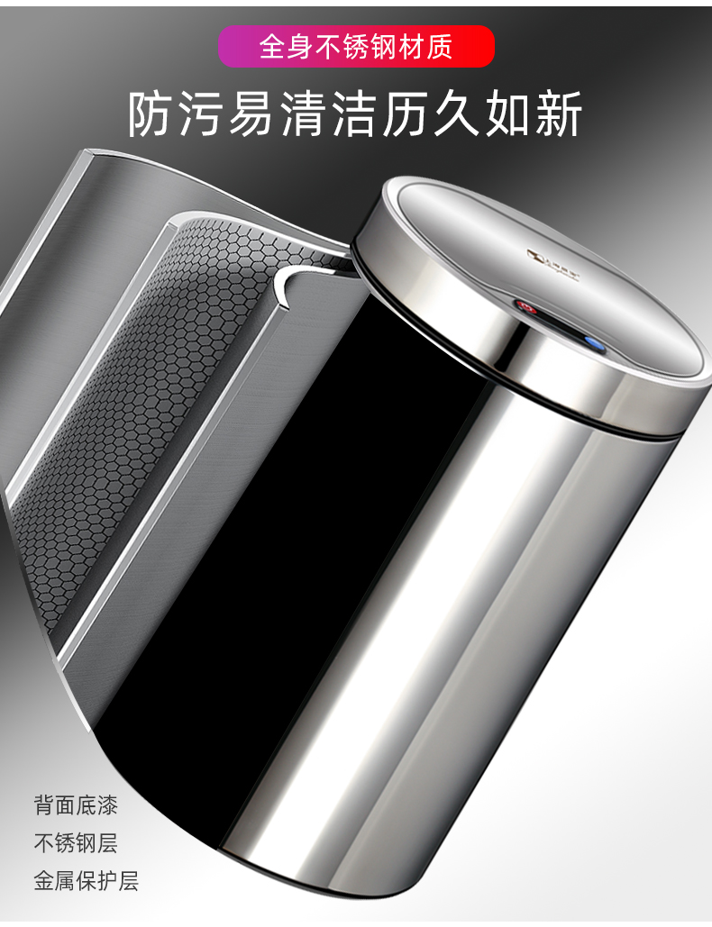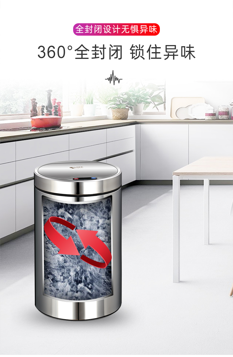 About Product:Stainless steel automatic induction large capacity trash can round with lid domestic toilet kitchen living room open cover