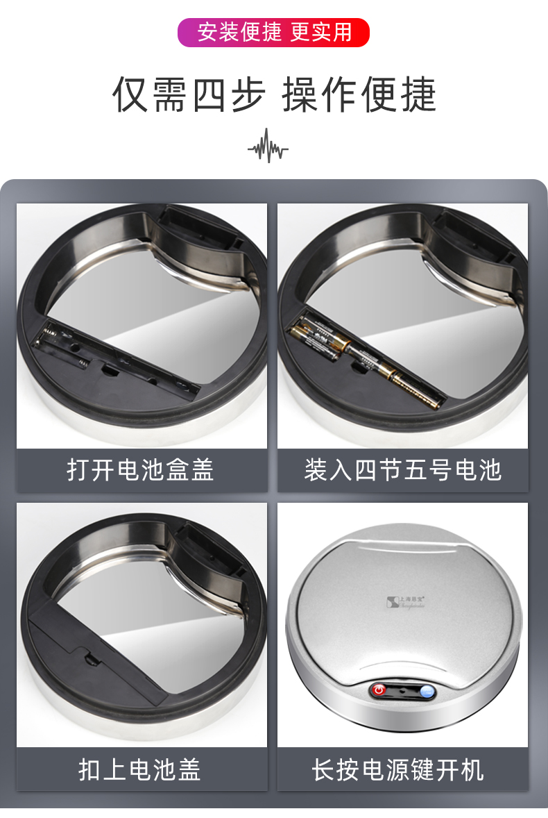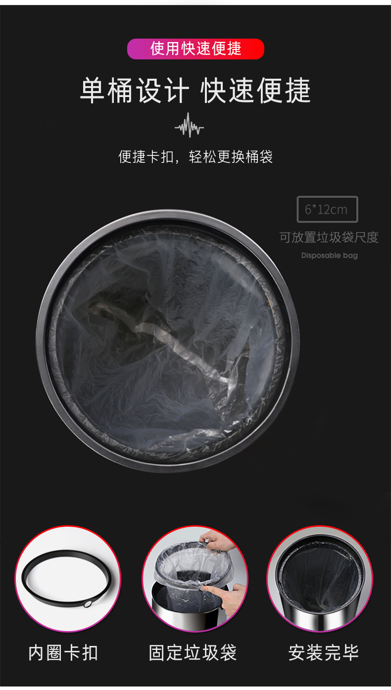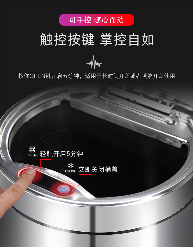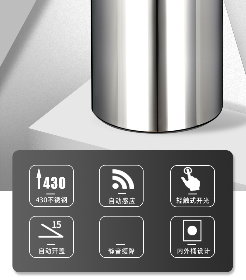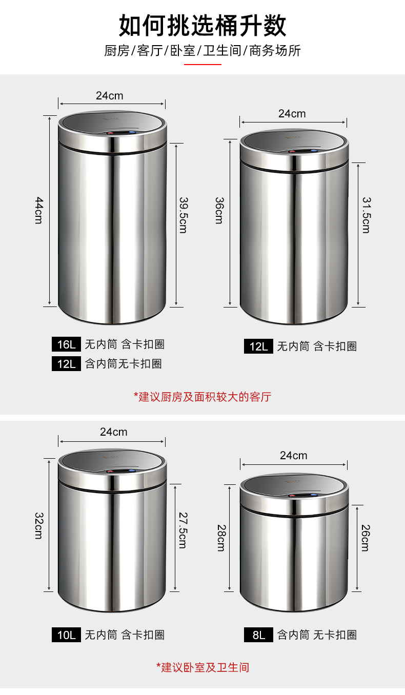 About Product:Stainless steel automatic induction large capacity trash can round with lid domestic toilet kitchen living room open cover