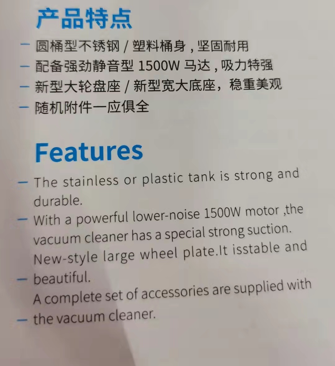 0 Liters 1500W Motor Dust Suction Machine -- For More Information about the Price, Please Call
