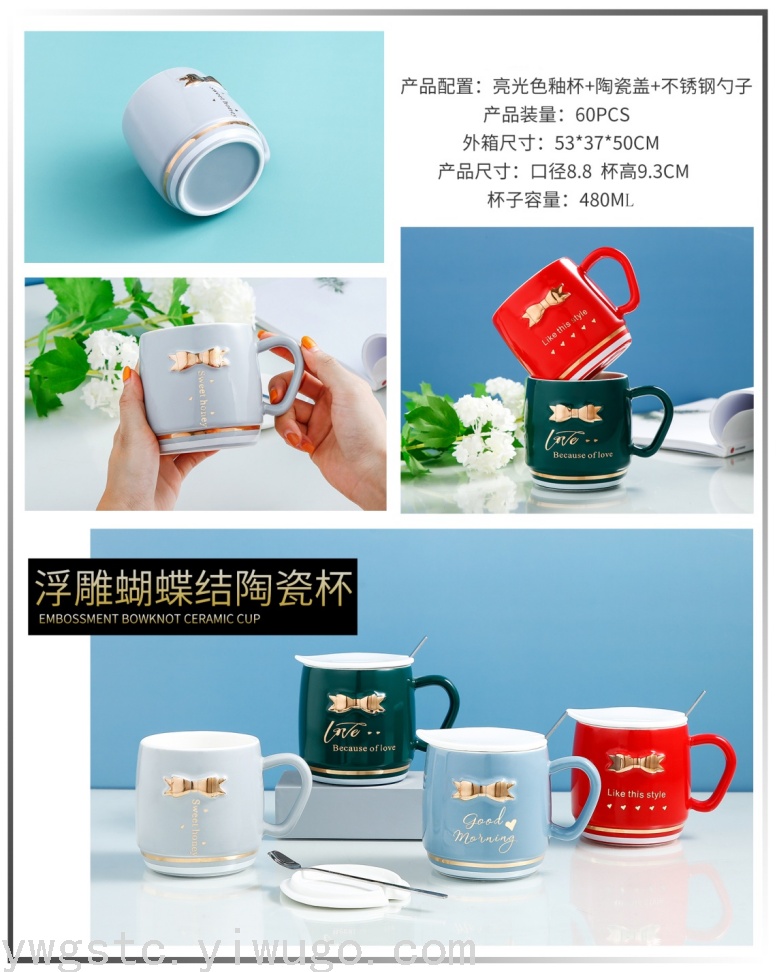 embossed bow ceramic cup