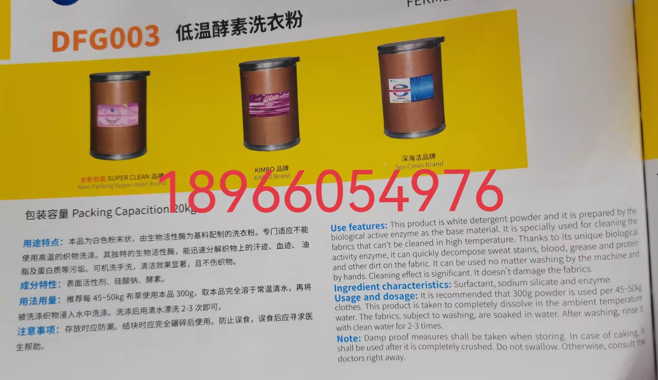 low temperature enzyme washing powder -- for more information about the price, please call