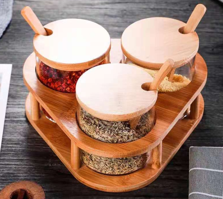 About Product:Kitchen glass salt jar combination set borosilicate glass spice box