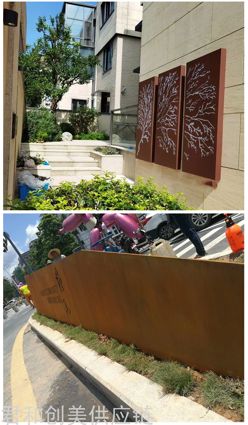 weathering steel landscape curtain wall wrought iron landscape modeling laser cutting landscape background wall 中文版