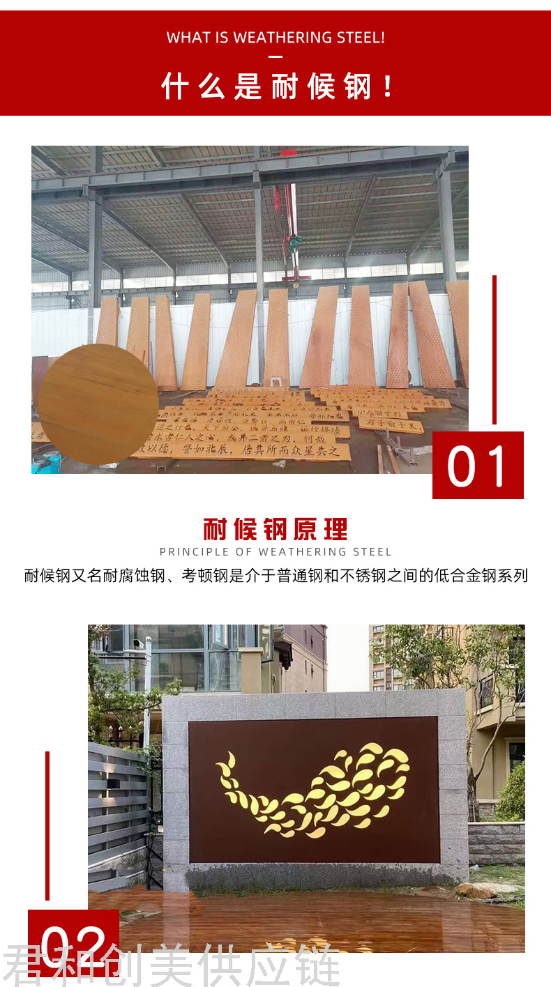 weathering steel landscape curtain wall wrought iron landscape modeling laser cutting landscape background wall 中文版