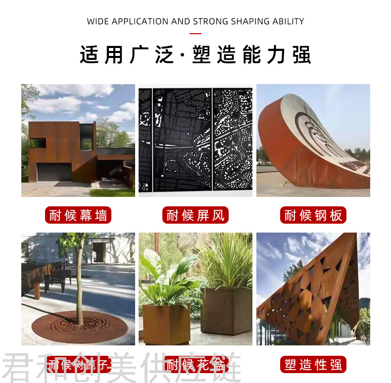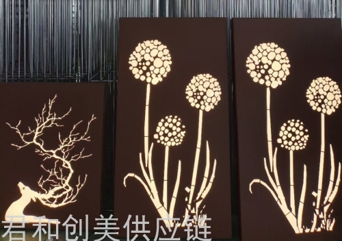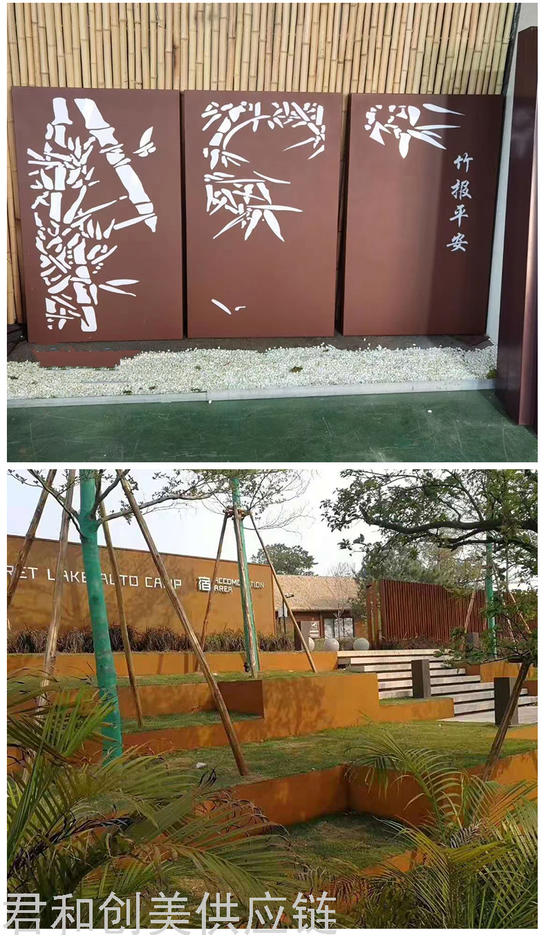 weathering steel landscape curtain wall wrought iron landscape modeling laser cutting landscape background wall 中文版