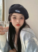 net red black knitted beret women's spring and autumn big head circumference hat summer versatile painter hat autumn and winter wool hat