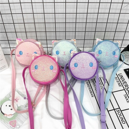 Kitten Children's Bags Crossbody Bag Colorful Shiny Girl Cute Cartoon Stylish Princess Bag Small Bookbag Shoulder Bag