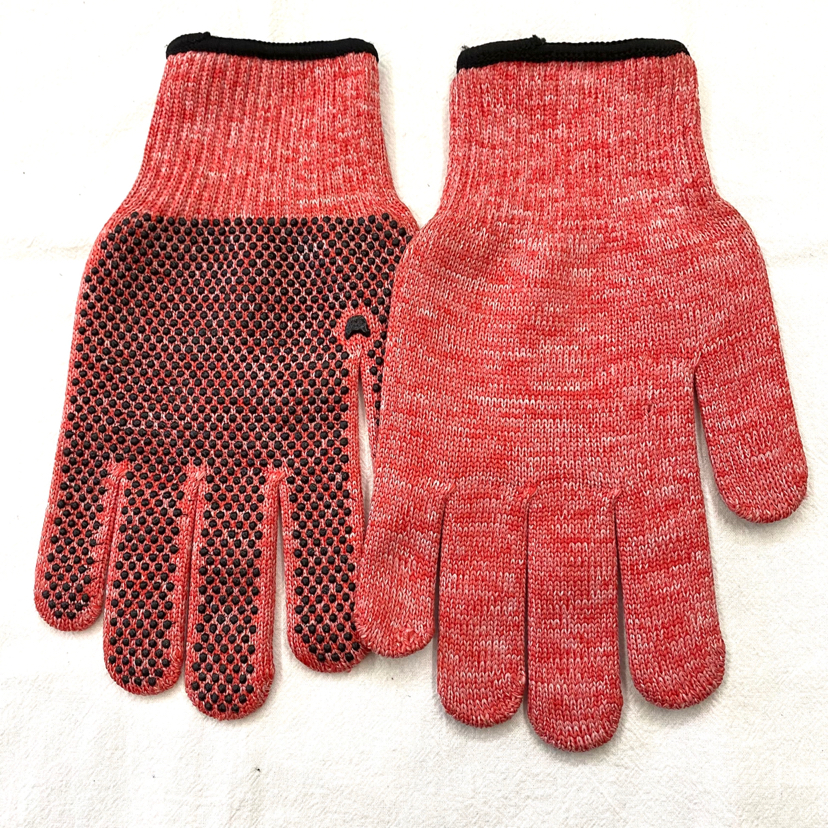 Large beads gloves in red, pink, blue, fluorescent color, yellow, white, and black. Each box contains 600 pairs, with 12 pairs per OPP bag. Single piece volume is 0.12 cubic feet.