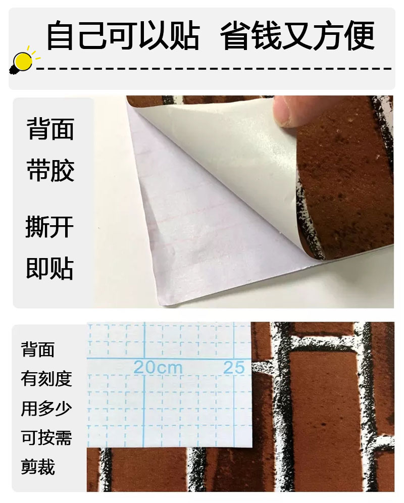 hotel wall skirt sticker wallpaper self-adhesive commercial restaurant classroom wall decoration red brick wallpaper background wall protection wall 中文版