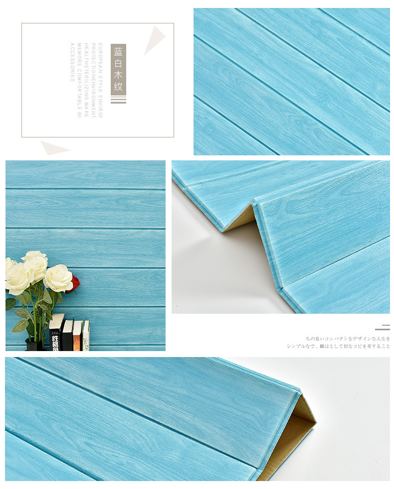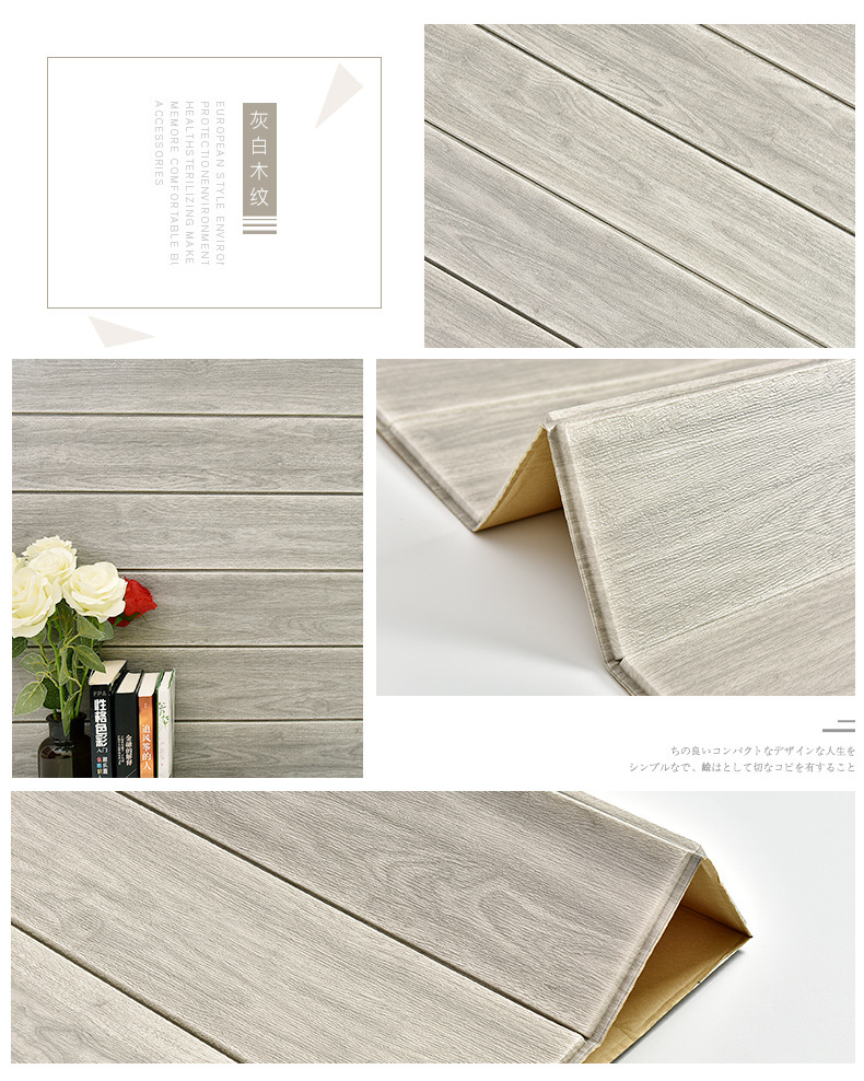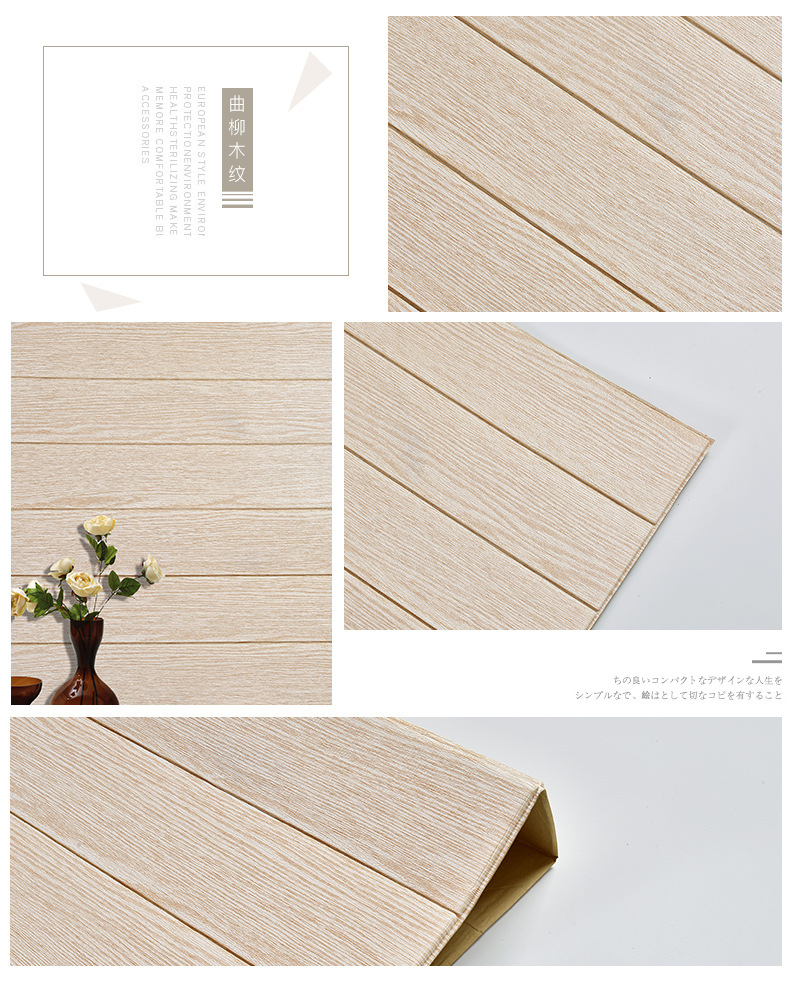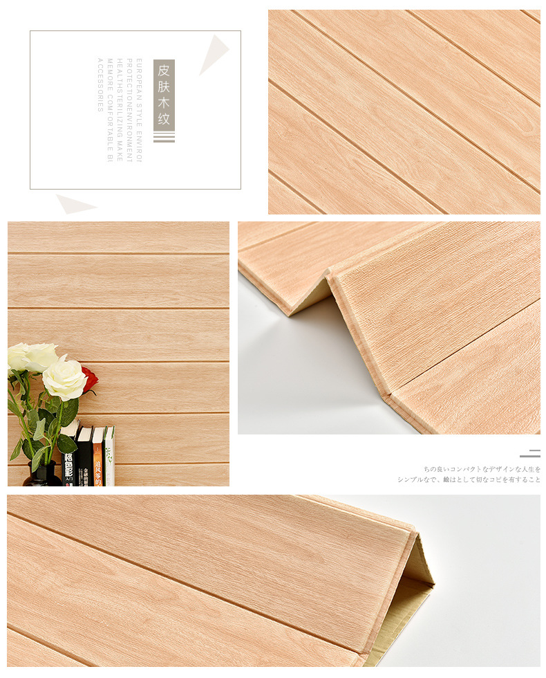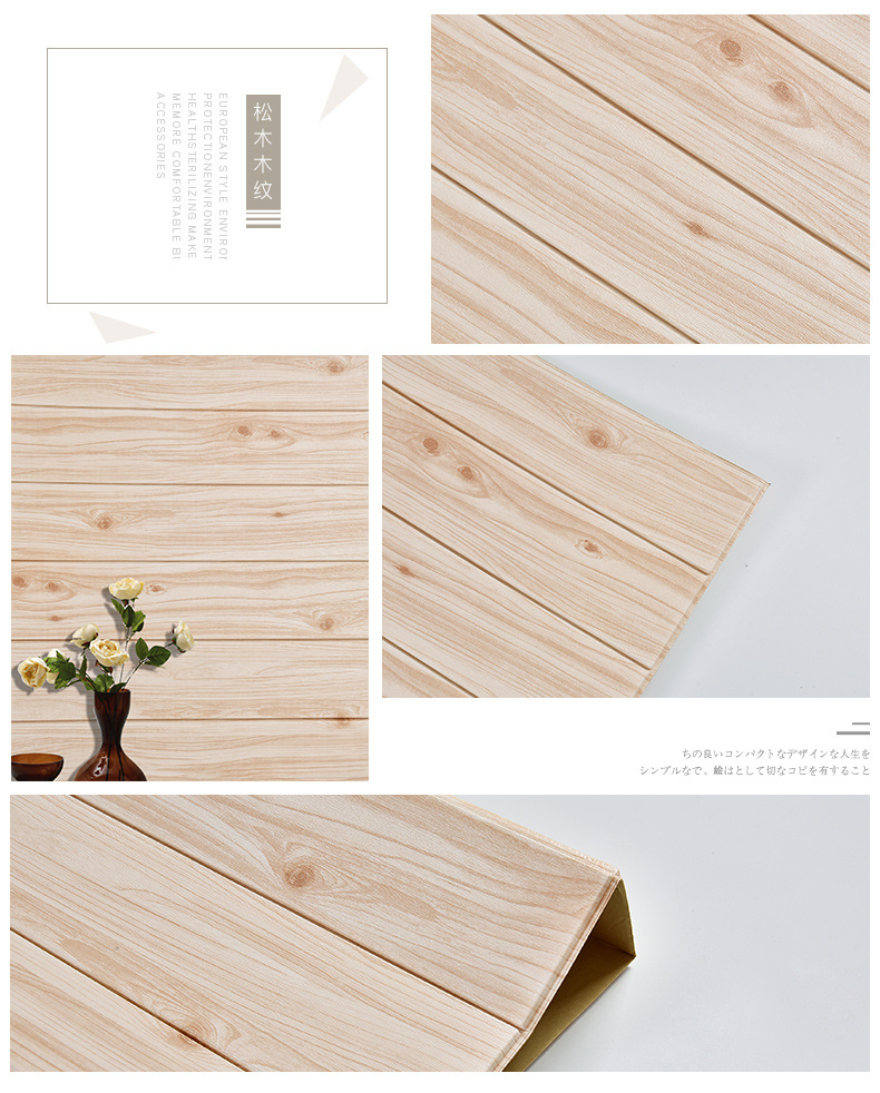 wallpaper self-adhesive 3d stereo wood grain foam wall stickers living room bedroom kitchen kindergarten wall skirt stickers waterproof wallpaper 中文版