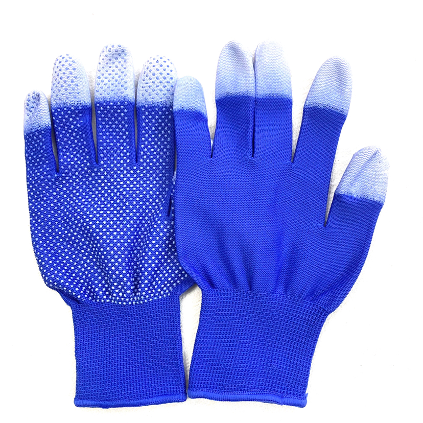 Work Safety Gloves - 13-needle Nylon Beaded Gloves with Coating on Fingers - Color can be specified - 12 pairs per OPP bag - 1200 pairs per piece - Compressible packing