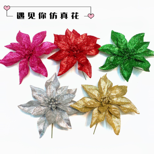 glitter powder artificial flower christmas decorations christmas tree pendant home festival decorative flower silk flower