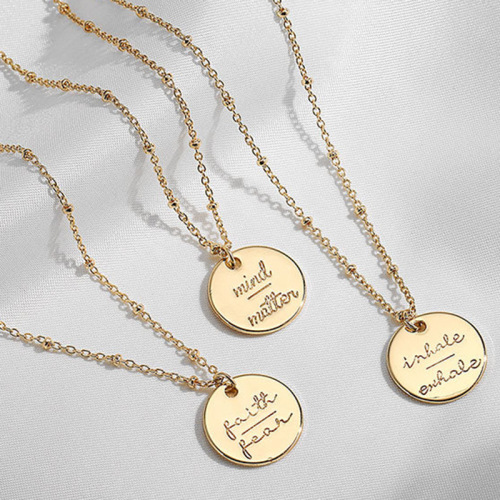 2021 european and american style stainless steel pendant simple ins style accessories disc letter necklace women's clavicle chain 中文版