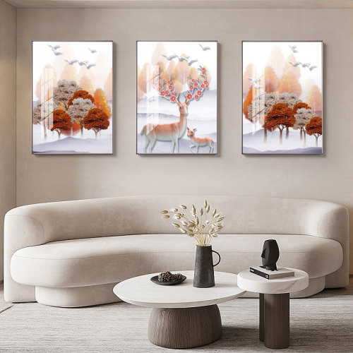 hand-painted simple style reindeer pattern living room wall decorative painting modern room triple crystal porcelain mural