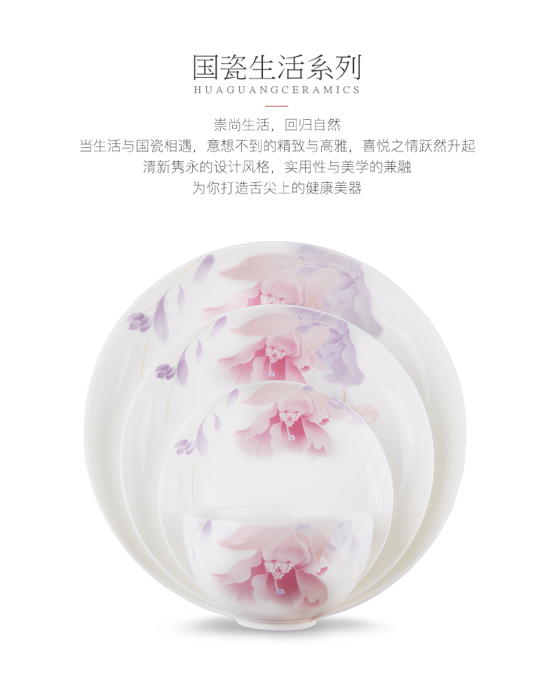 About Product:Huaguang national porcelain bone china bowls and dishes tableware set household meal sharing bowl dish plate special person dedicated flower good Moon round quantity discount, wholesale contact customer service 15005898193 Tao glass network, WeChat same number