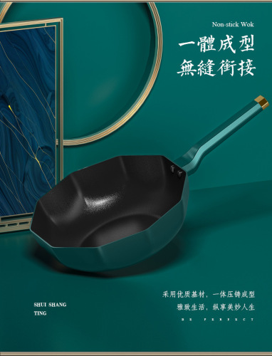 factory supply medical stone ten-angle non-stick pan household wok flat bottom burning gas stove universal pot for induction cooker 中文版