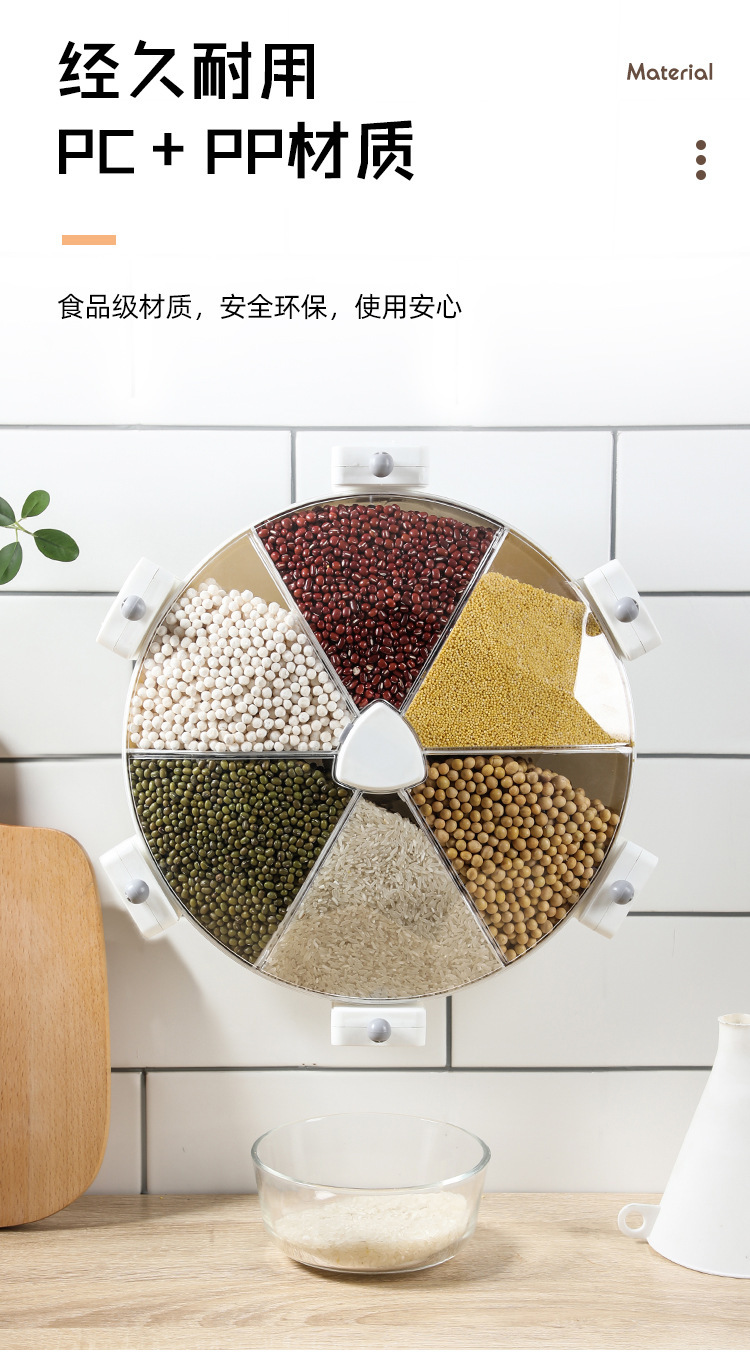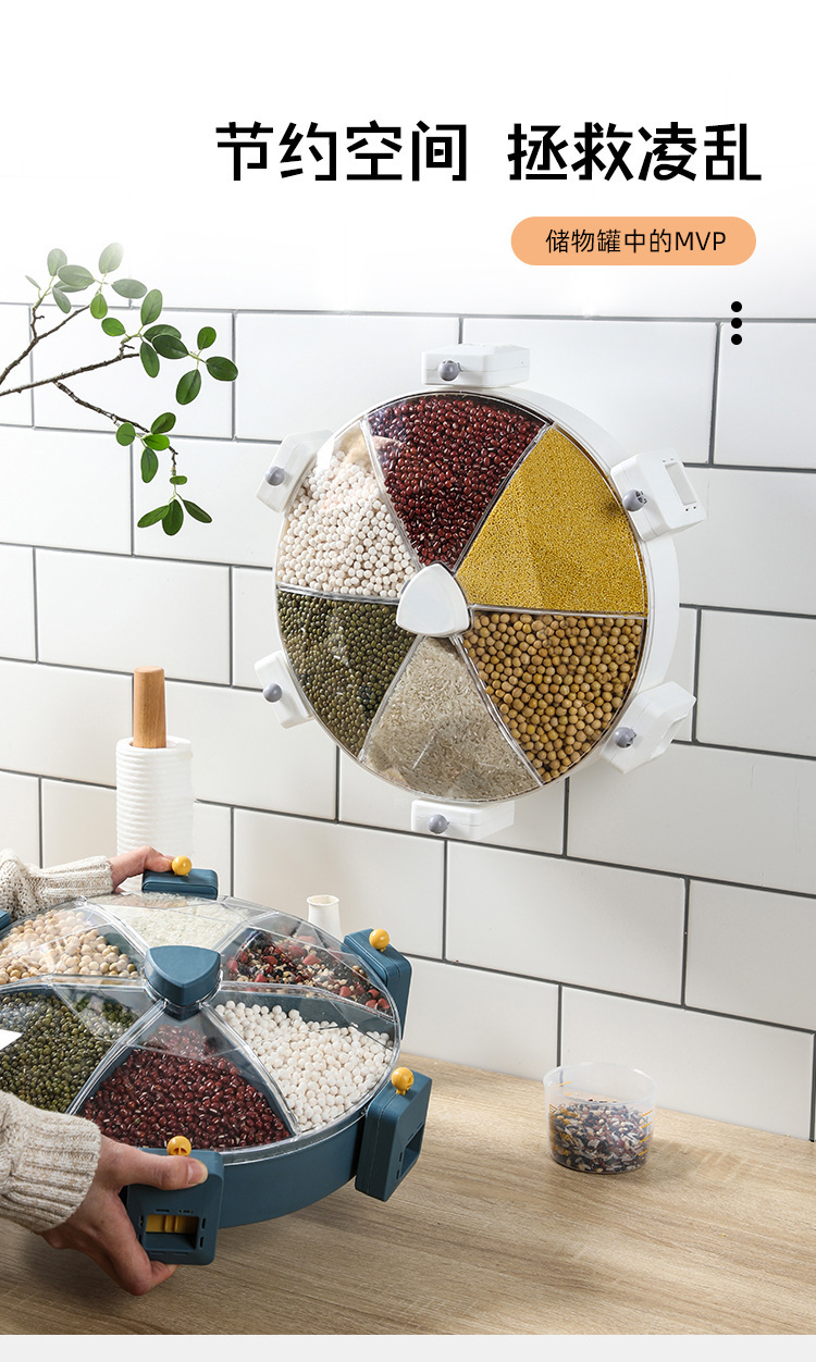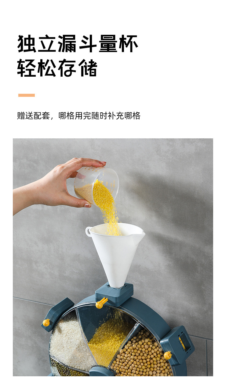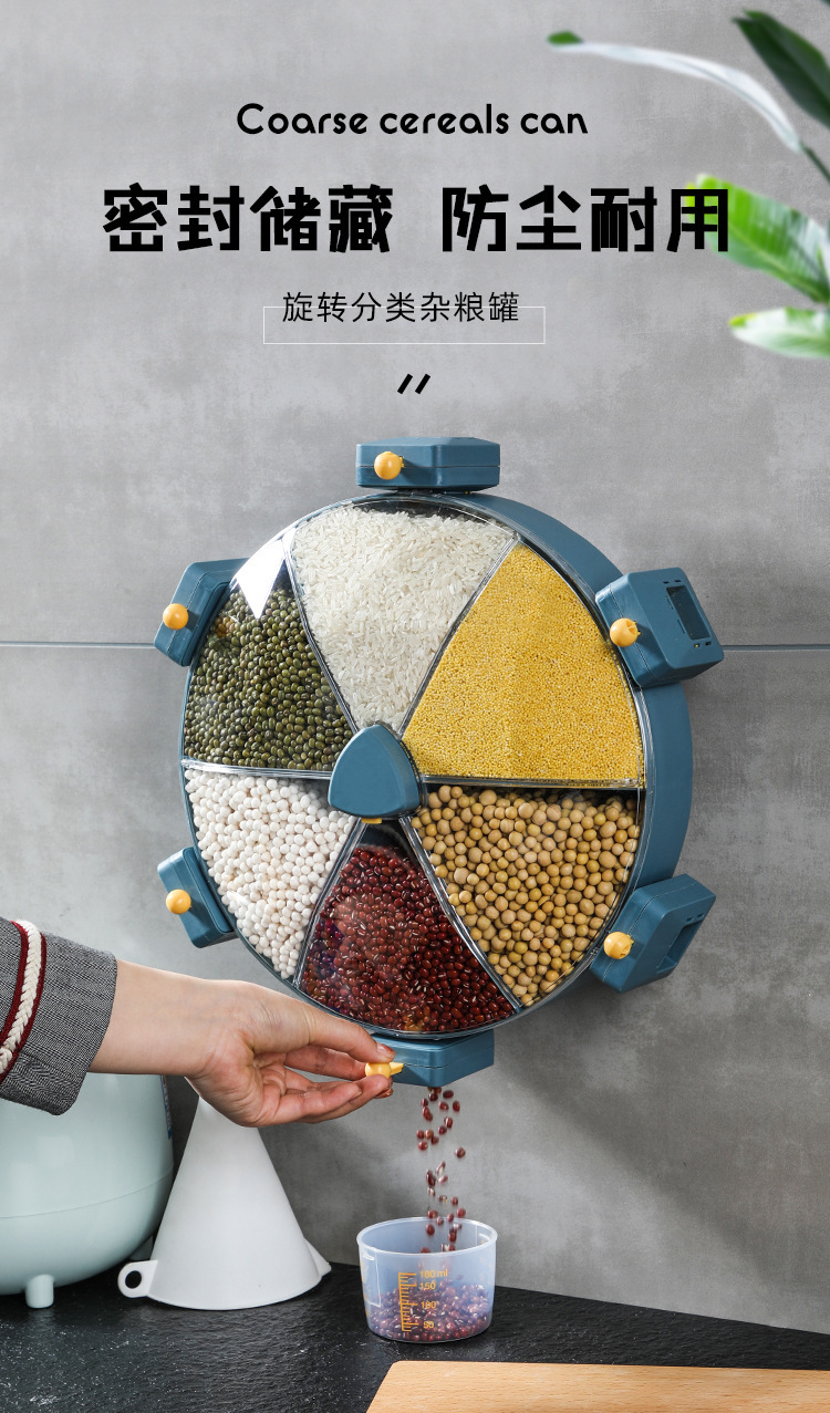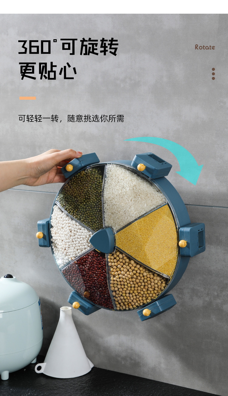 Windmill-style five grain storage box, no drilling required, rotating rice bucket, partition wall hanging style, home use rice barrel, insect-proof and moisture-proof