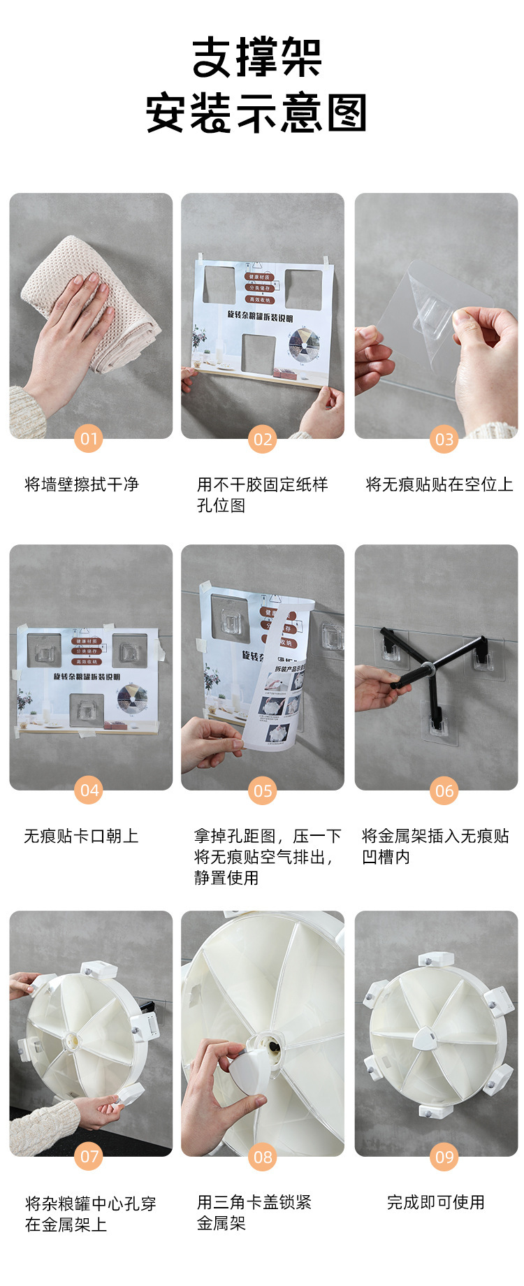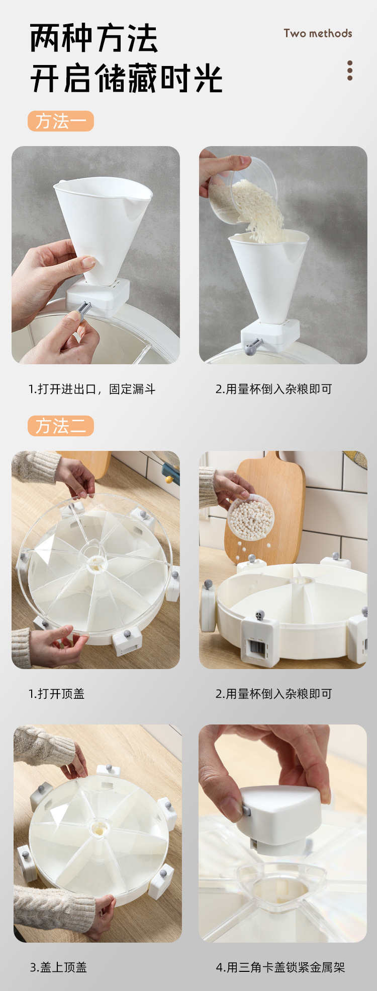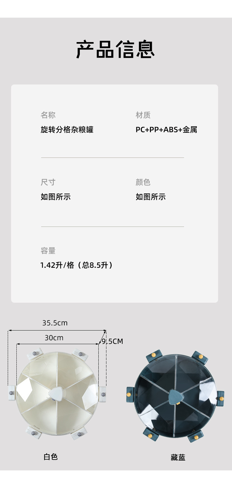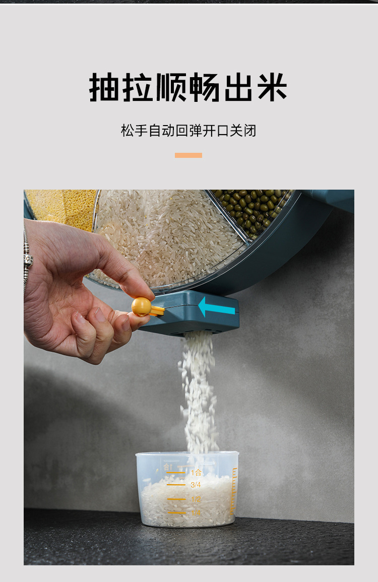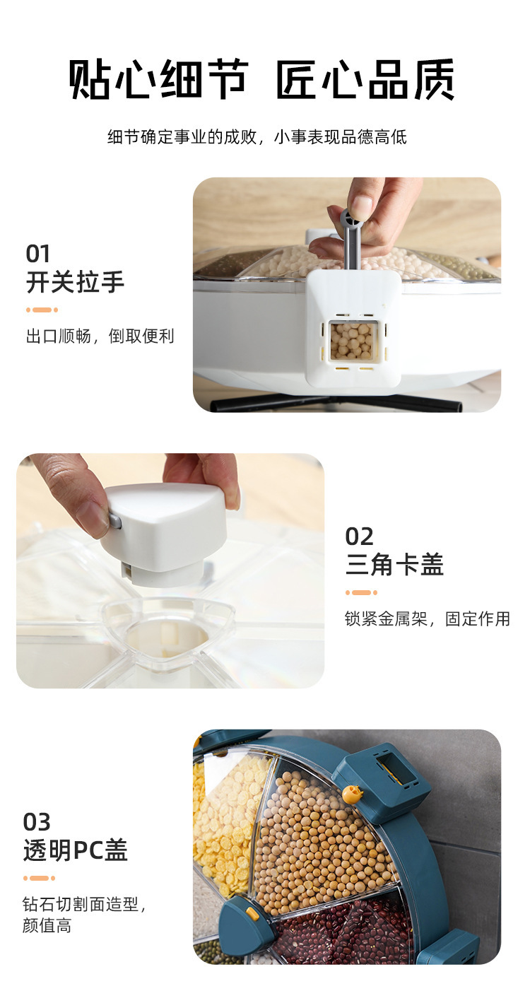 Windmill-style five grain storage box, no drilling required, rotating rice bucket, partition wall hanging style, home use rice barrel, insect-proof and moisture-proof