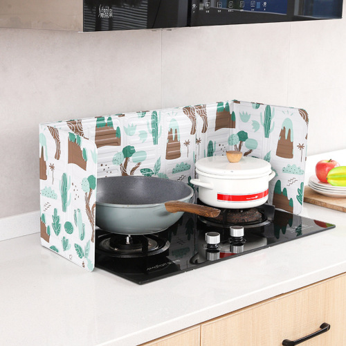 Used in the kitchen to prevent oil splatters and heat insulation, preventing the walls of the stove from being covered with oil stains. The plastic condiment containers around can melt and deform due to heat. The aluminum material is soft and easy to shape, and it is easy to clean.