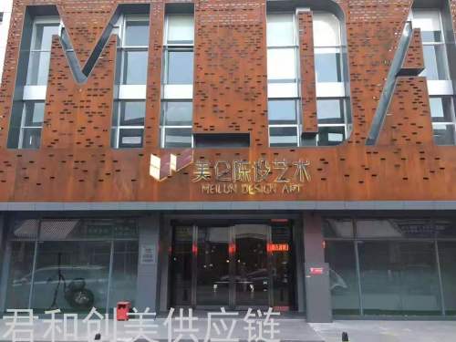 weathering steel landscape curtain wall wrought iron landscape modeling laser cutting luminous background wall 中文版